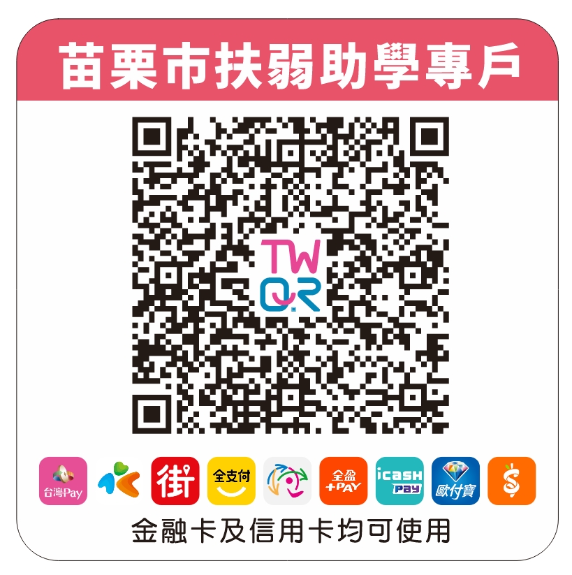 手機下載「台灣Pay」、「橘子支付」、「全盈Pay」、「街口支付」、「icash pay」、「歐付寶」、「全支付」、「悠遊付」、「iPASSㄧ卡通」等任一款行動支付APP,手機掃描扶弱助學專戶QR Code,讓捐款人有更便利、貼心的體驗。