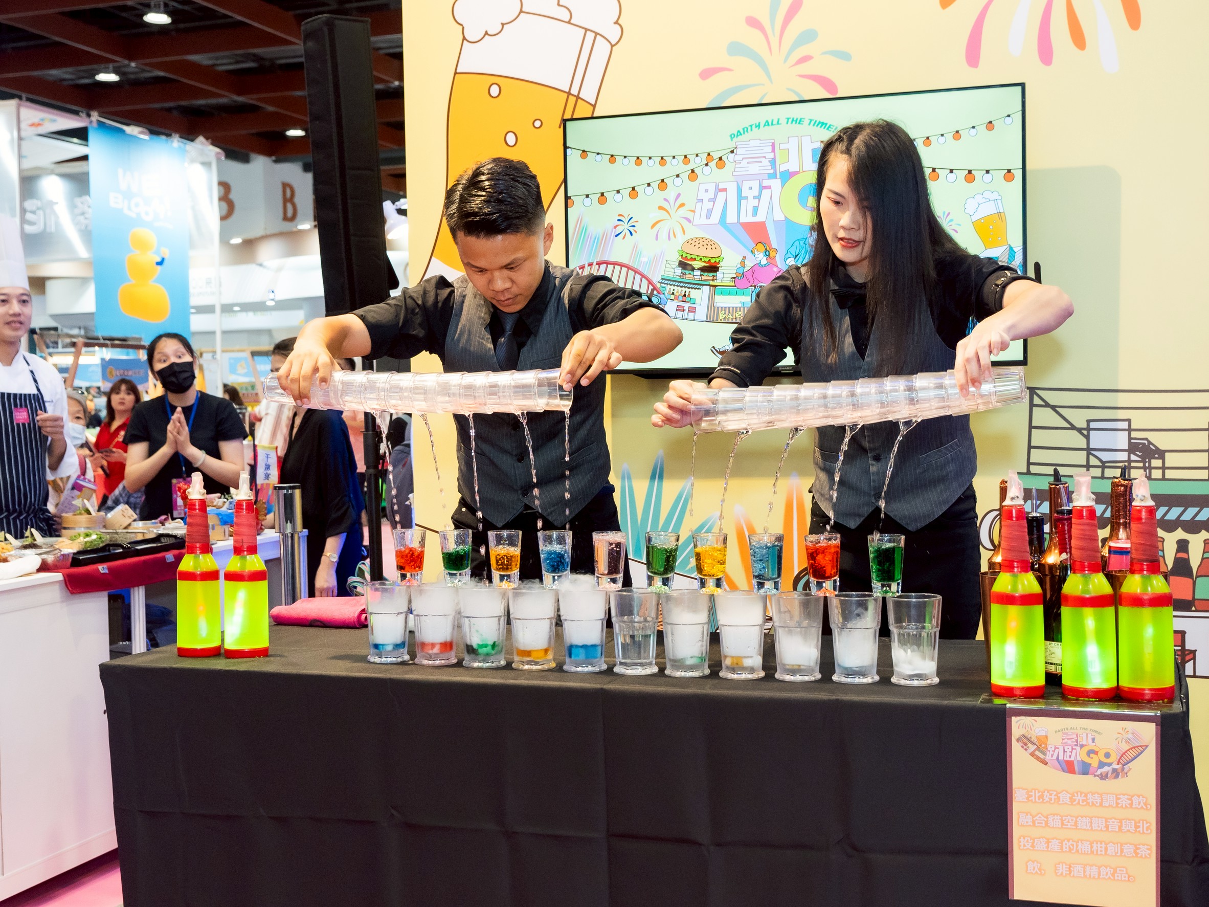 2025年臺北夏季旅展「臺北館」開幕表演花式調飲秀,精彩技藝嗨翻全場!