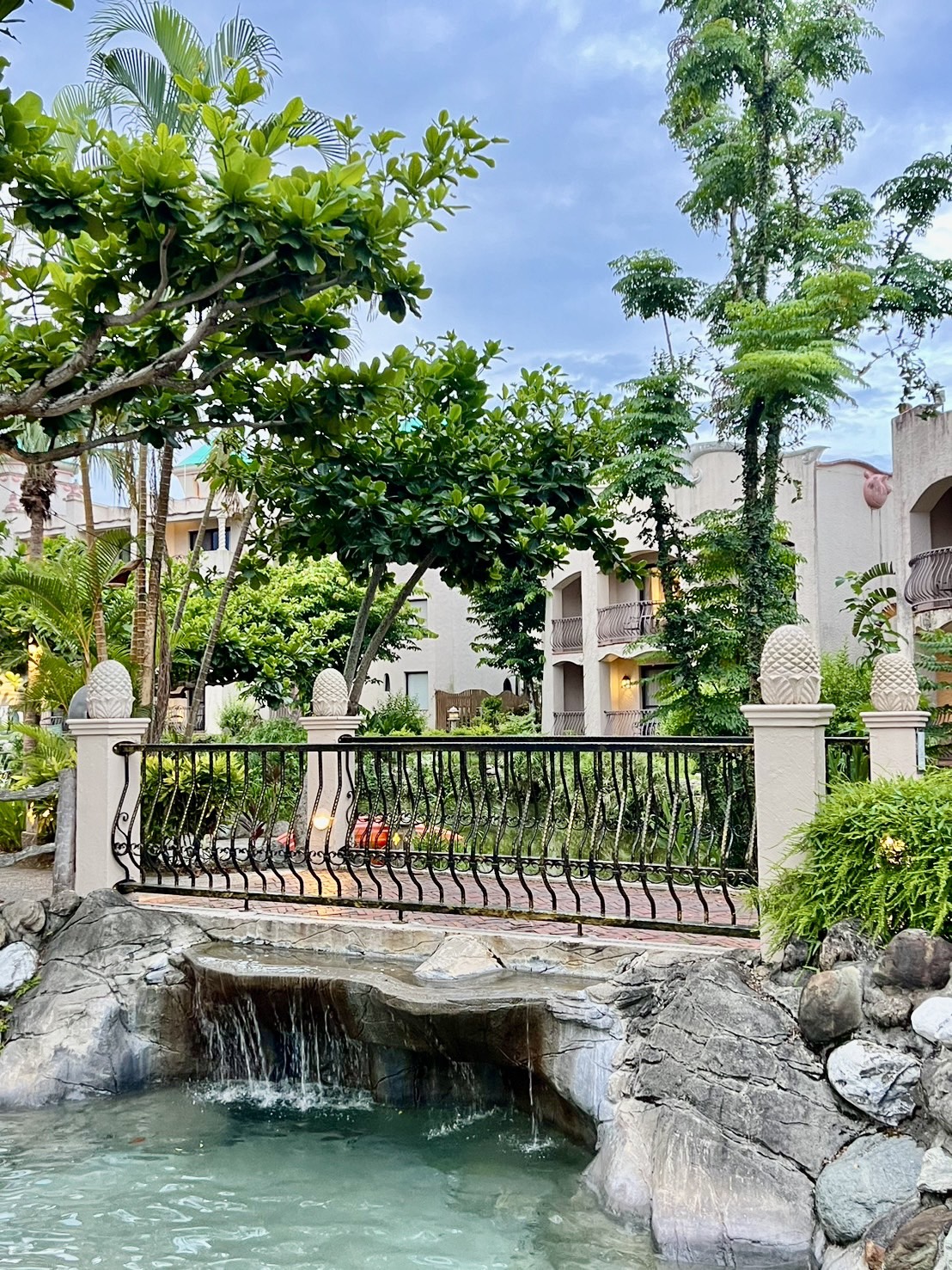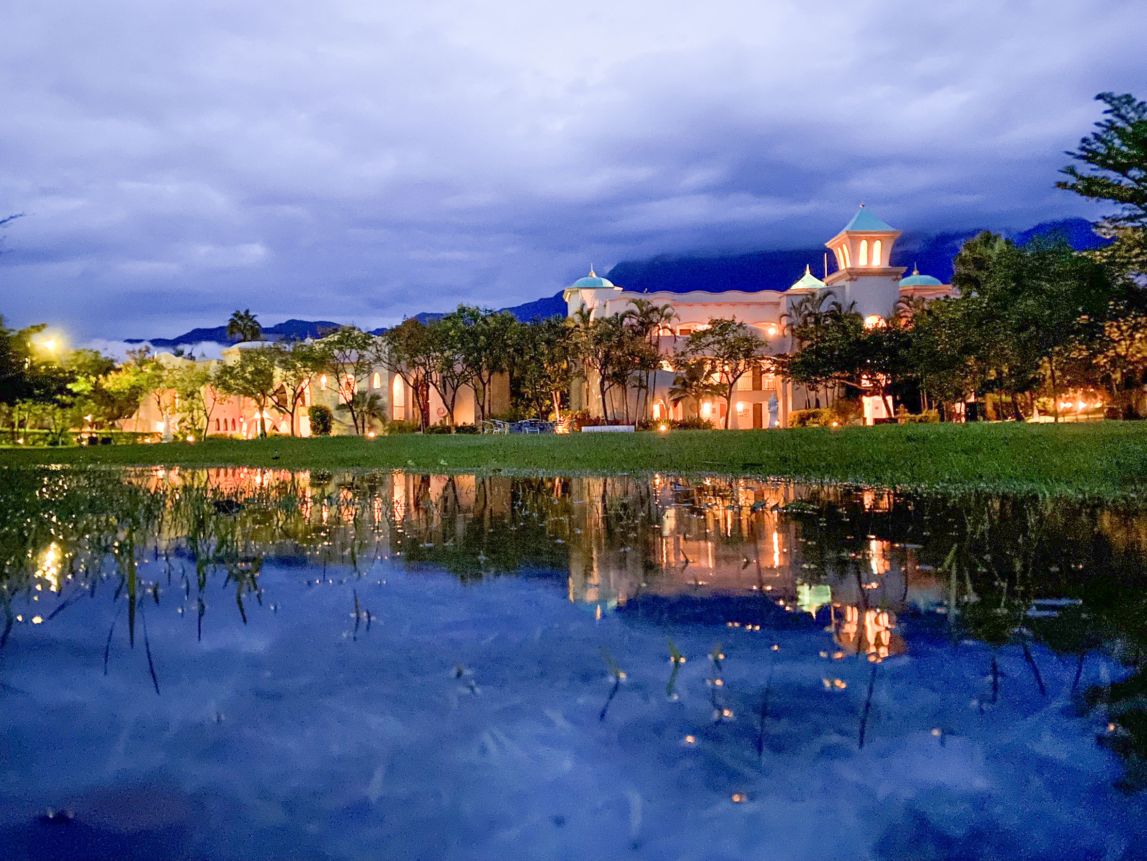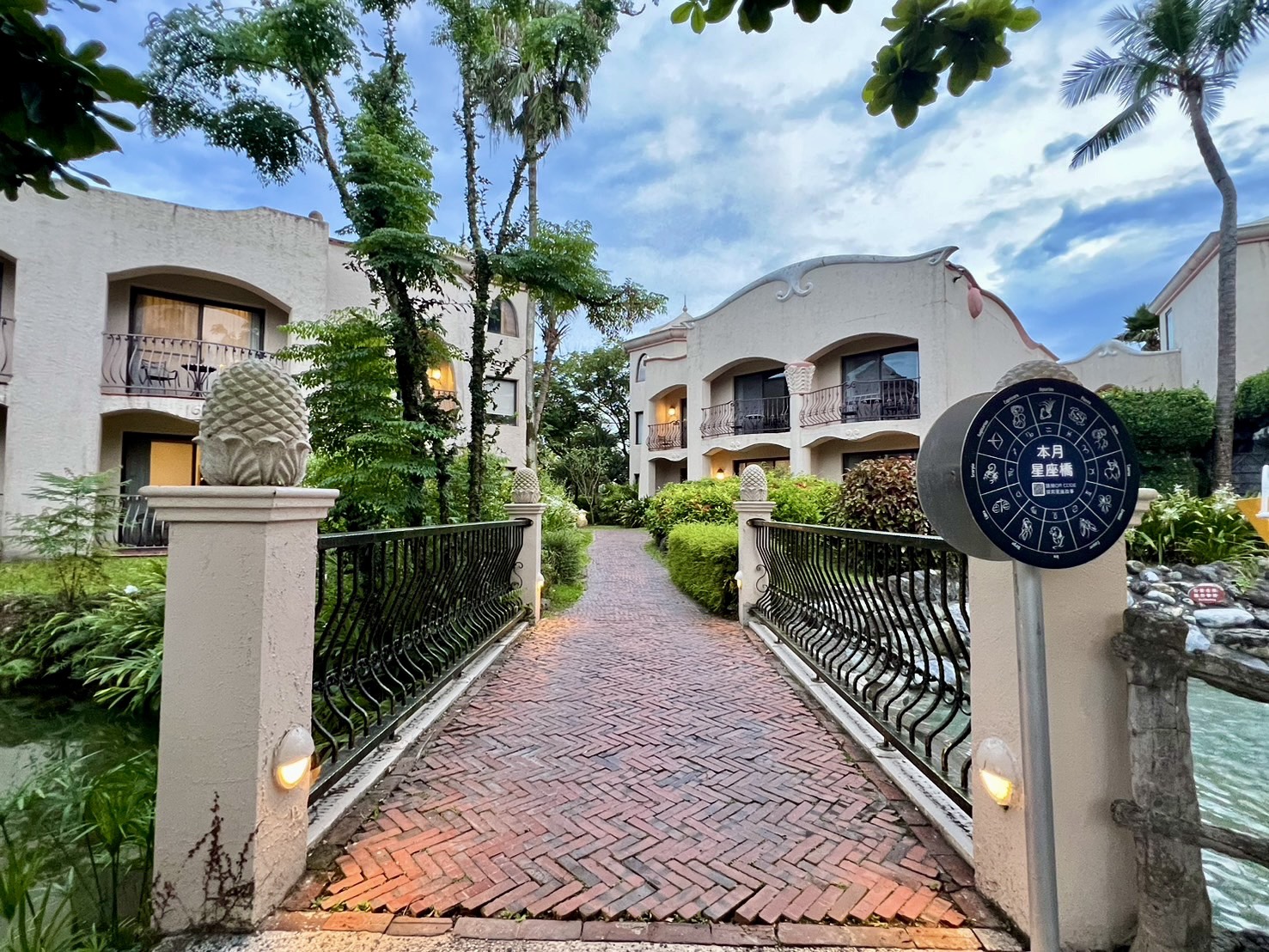「理想大地渡假飯店」擁有萬坪的綠地森林,園區內綠意盎然,植栽圍繞著長達2.2公里的威尼斯風格運河,搭乘遊艇穿梭於運河,沿途經過三座島嶼、七座碼頭、十二座橋樑,沿岸欣賞運河上22棟西班牙風格獨棟別墅,彷彿置身於南歐小鎮,可以感受到濃濃的異國風情氛圍,入住獨棟式環湖景觀故事主題房型,每間客房陽台景觀皆可感受被群山環繞以及觀賞景觀河道的遼闊視野。