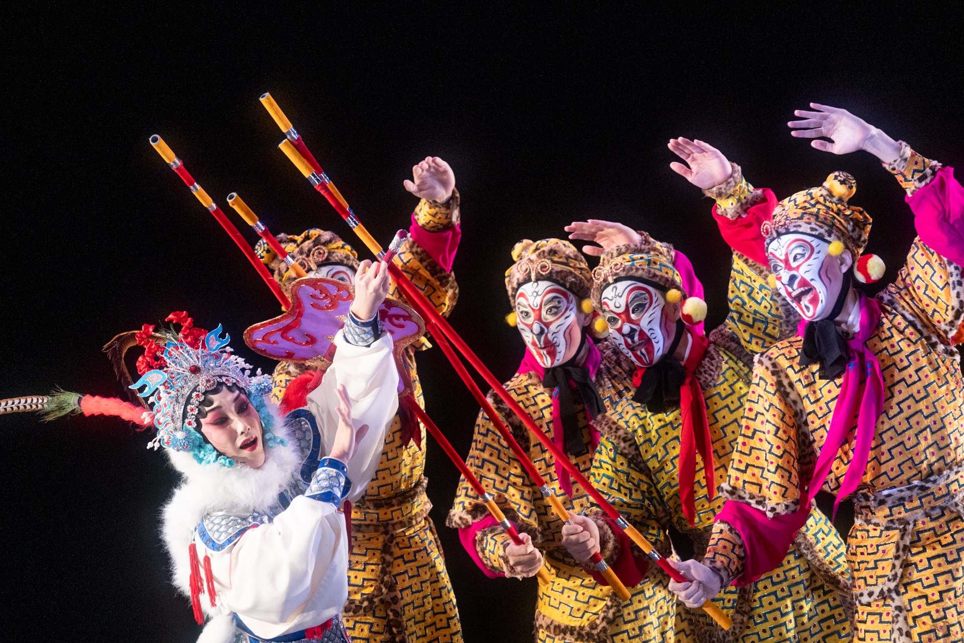 劇照-謝樂飾鐵扇公主 美猴王 魏伯丞 猴分身-黃家成 陳冠丞 王詠增 圖/臺灣國立傳統藝術中心提供