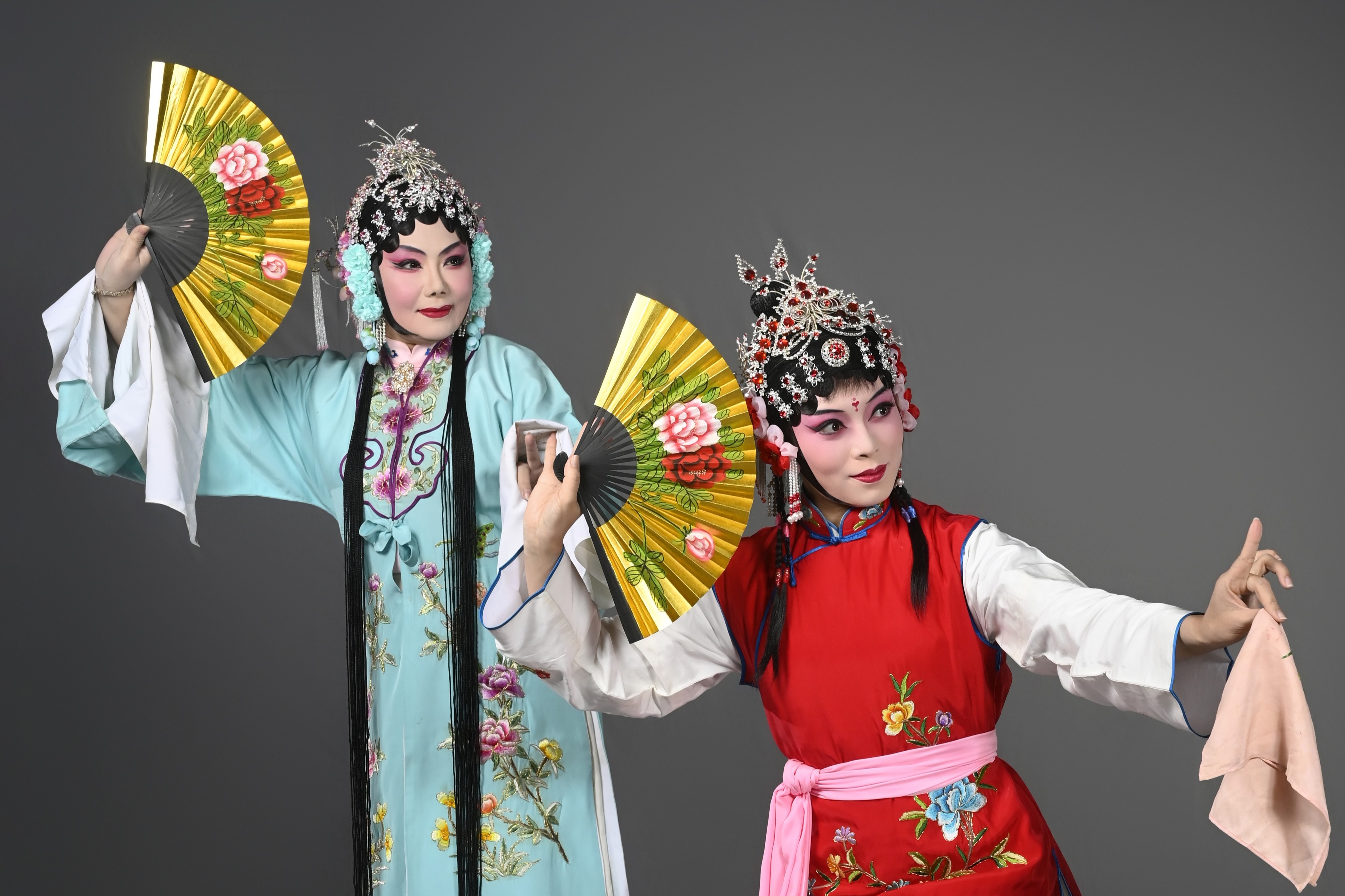 臺灣豫劇團2025年唱秋公演《花園贈金》(左)張瑄庭飾演黃桂英、孫紫峮飾演春紅。圖/臺灣豫劇提供