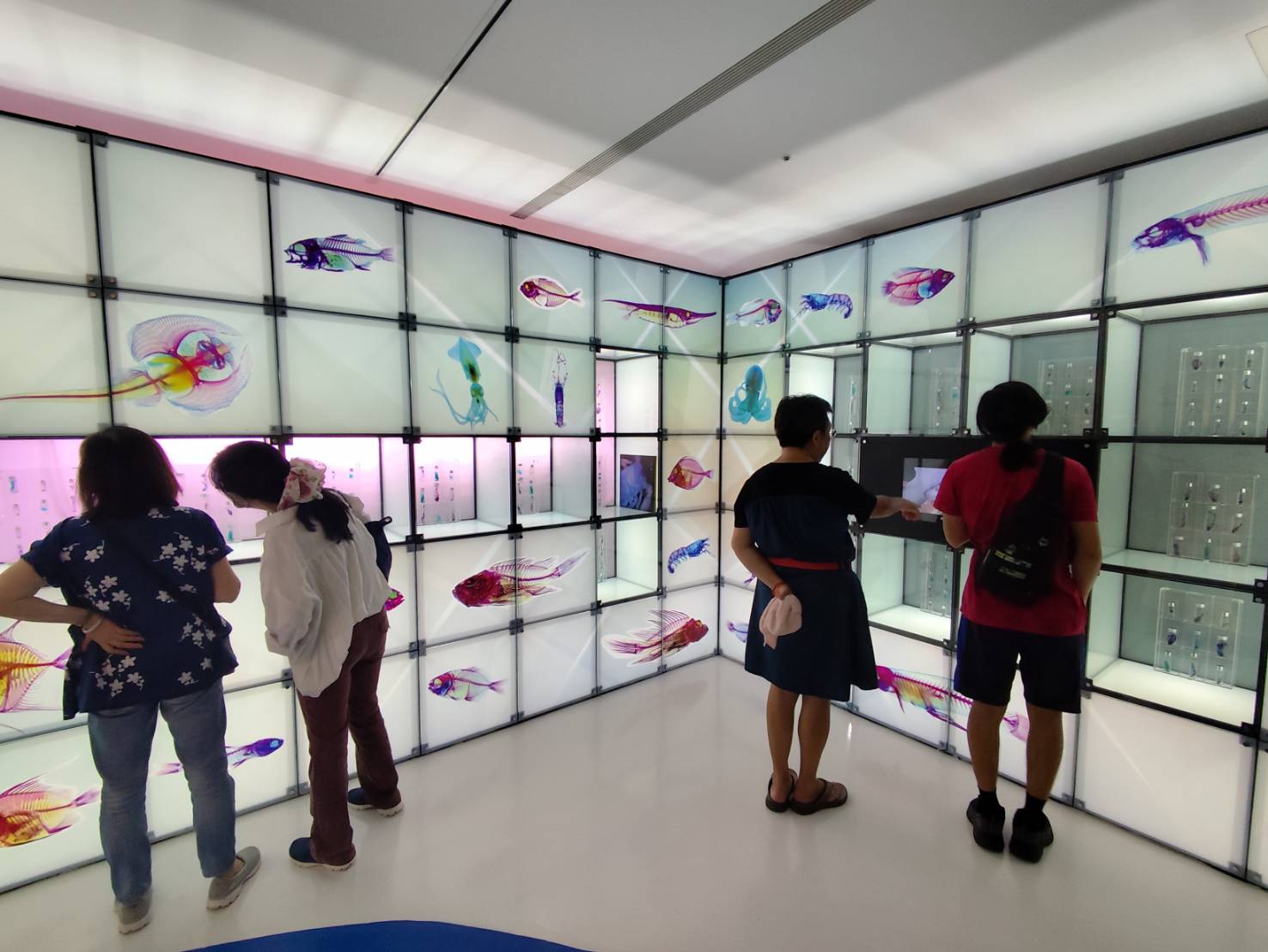 此外,展場特設的「潮境海洋保育教室」集導覽、工作坊及標本展示於一體,提供教育、活動與休憩使用,並介紹透明骨骼染色標本,讓遊客深入了解常見科研標本製作過程。