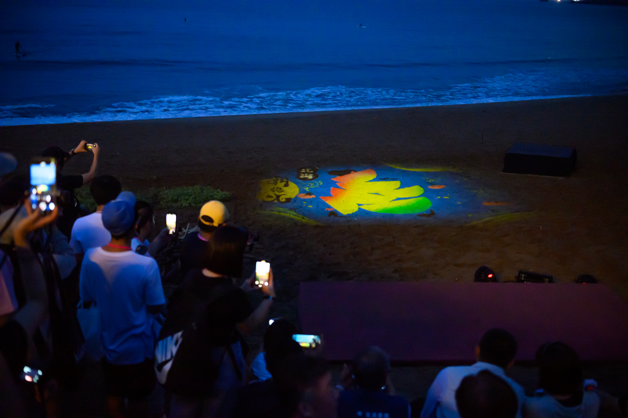 2025北海潮與火活動點燈儀式,由天衍互動光雕團隊以沙灘光雕秀做為開場.