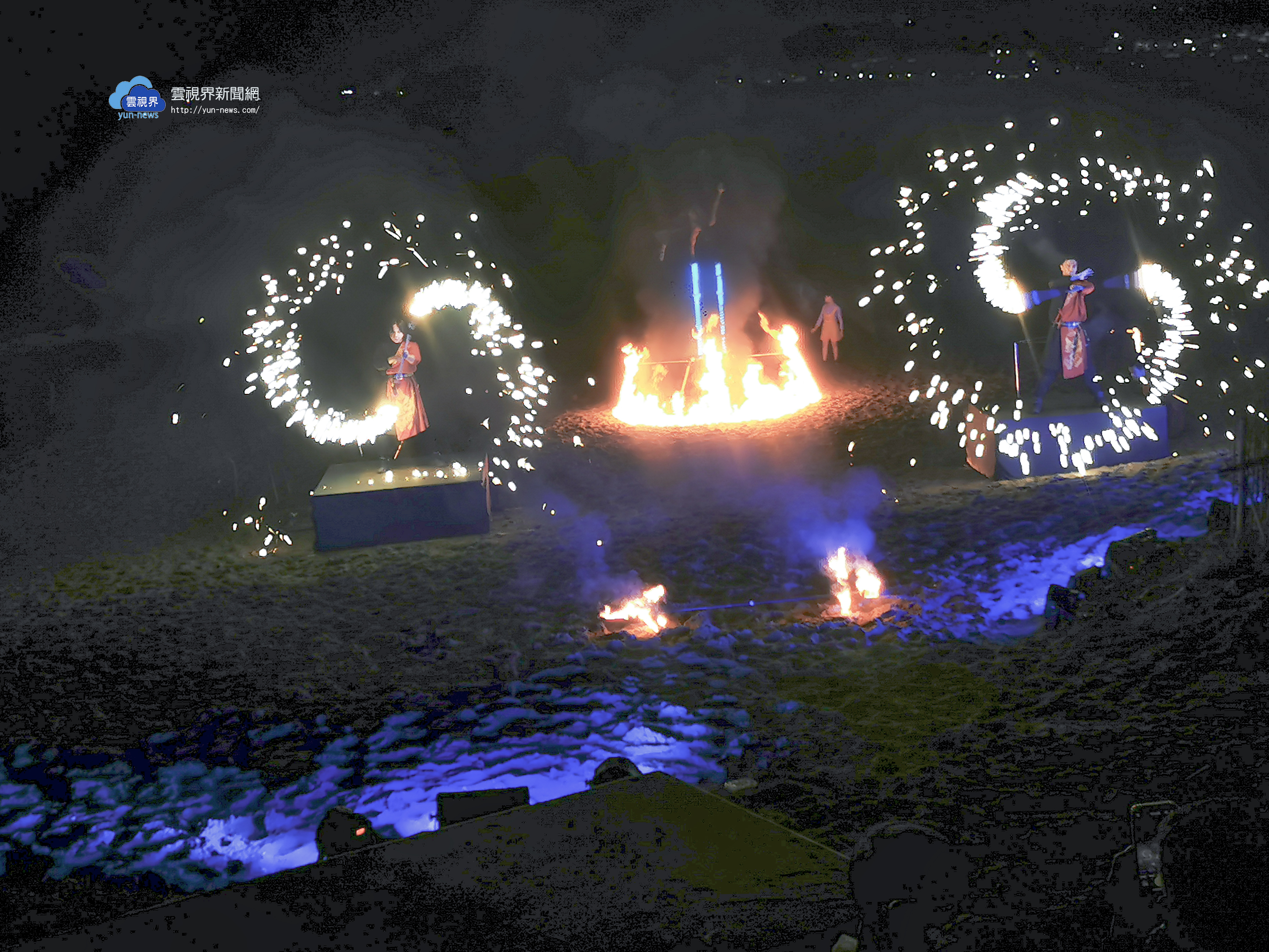 後由新北市傑出演藝團隊「馬戲之門」與擅以電幻秀融合舞蹈與科技藝術的「旋舞炎」接力演出,2團共同規劃編排舞碼《火嶼光》,透過馬戲與表演者們身體敘事,展開一場科技光影結合火舞及馬戲劇場的精采大秀。