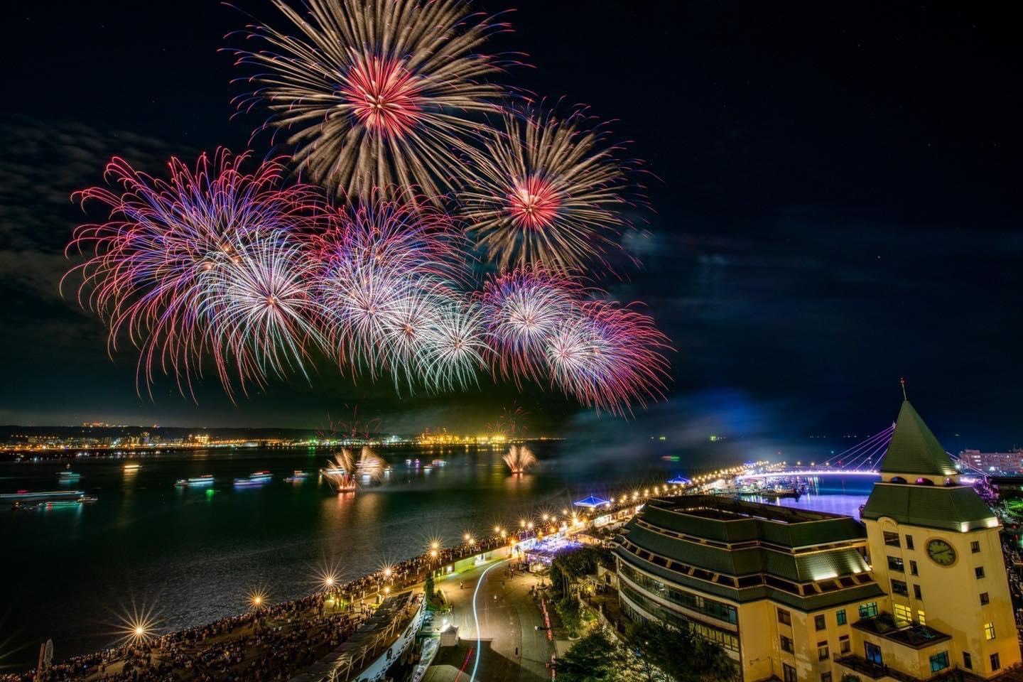 新北夏天最讓人期待的大型盛事「淡水漁人碼頭煙火秀」自2020年開始舉辦,每年都吸引大批遊客朝聖,今年煙火秀從2場加碼為3場,分別於8/10、8/17、8/24連續3個週日晚間8點舉行,在淡水漁人碼頭觀海廣場外煙火施放長達600秒,每場都是不同主題,8/10首場煙火秀以「戀曲永恆」為主題,施放桃紅、粉紅色系的愛心煙火,搭配慢節奏情歌,營造濃濃戀愛氛圍;8/17煙火秀以「碼頭映像」為主題,主打海藍與檸檬黃色系煙火,透過霞草型與時雨型煙火,呈現海浪律動的模樣,並以藍色弧線煙火模擬水波流動,呼應港灣與海洋意象;8/24最終場「情人之橋」,以橋拱型煙火特效,象徵情人牽手走過情人橋,並施放牡丹、大麗、大量斑千輪等繽紛煙火,營造空中花雨,打造動態立體的浪漫終章!