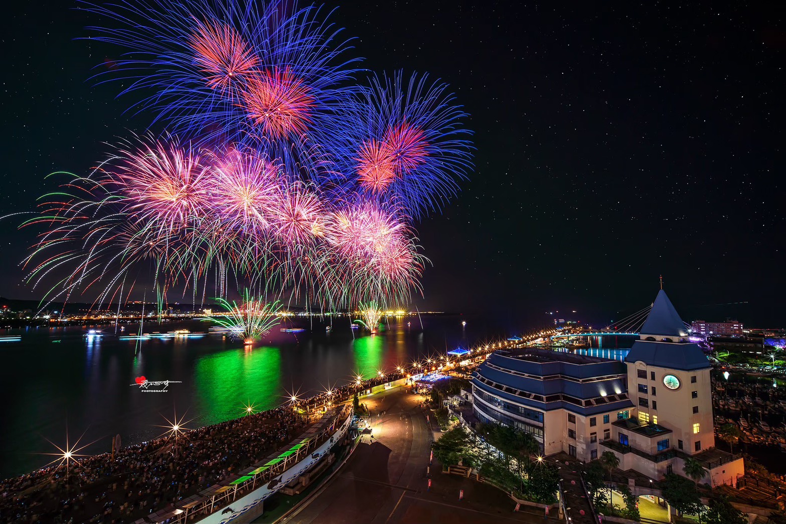 連續舉辦九年的淡水漁人碼頭煙火秀,淡水福容飯店坐擁煙火景觀第一排,每年住房、餐廳、河岸煙火席都是一推出就秒殺,
