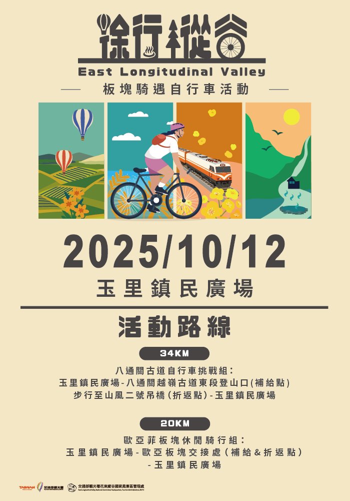 徐行縱谷品牌活動網址: 知本好湯自行車漫遊活動|2025/09/06(六):https://www.accupass.com/event/2507160545541116906553