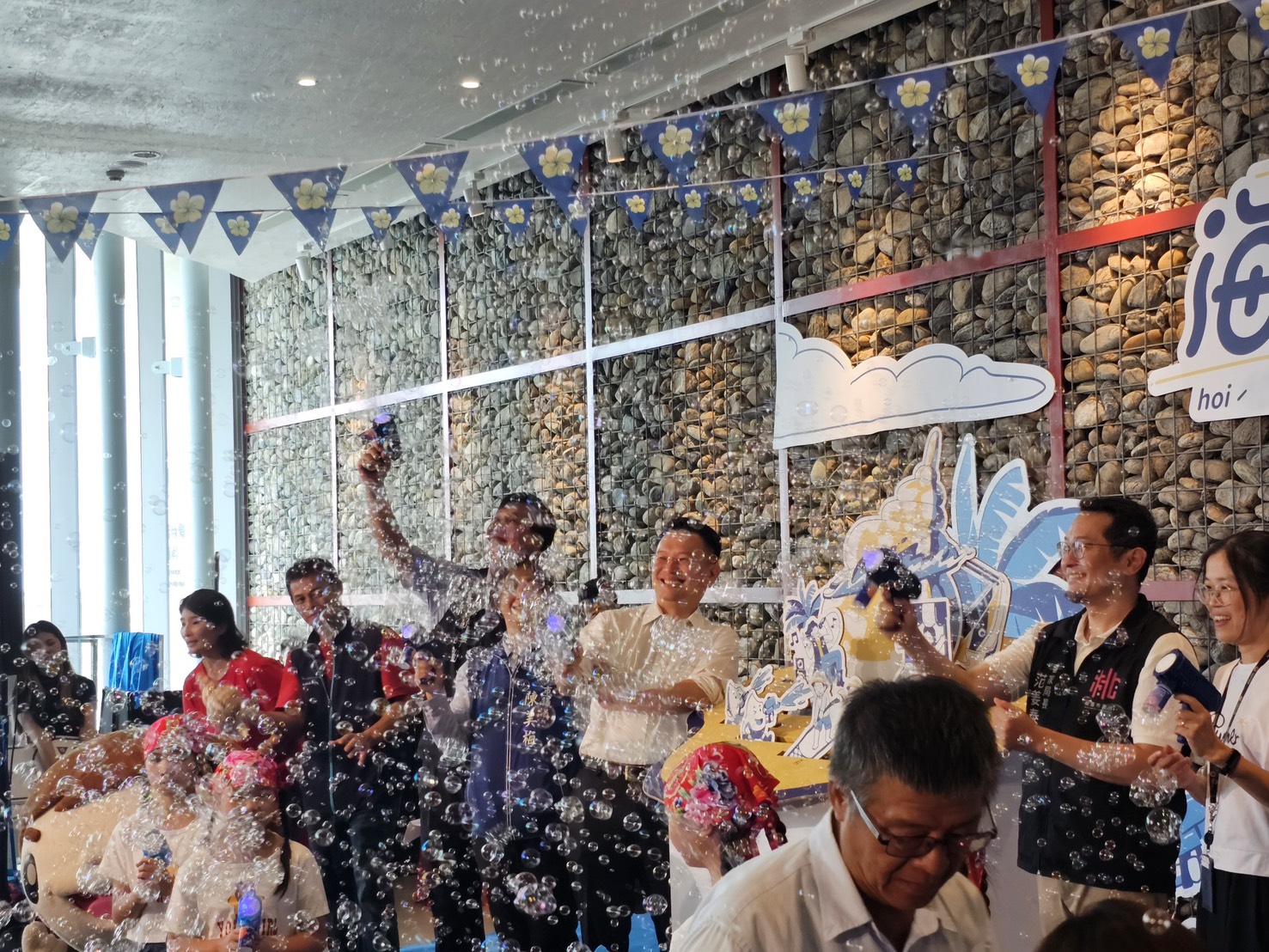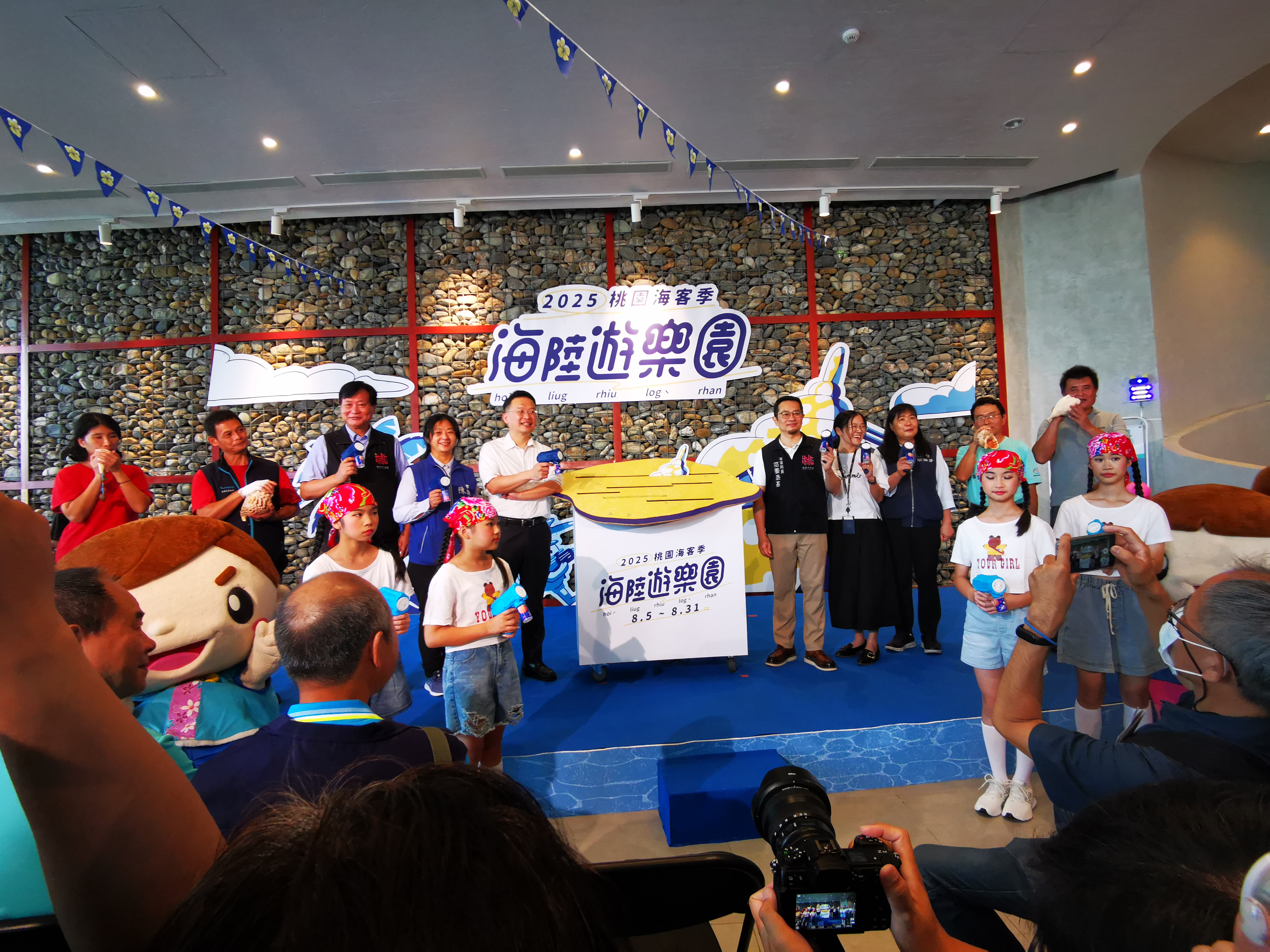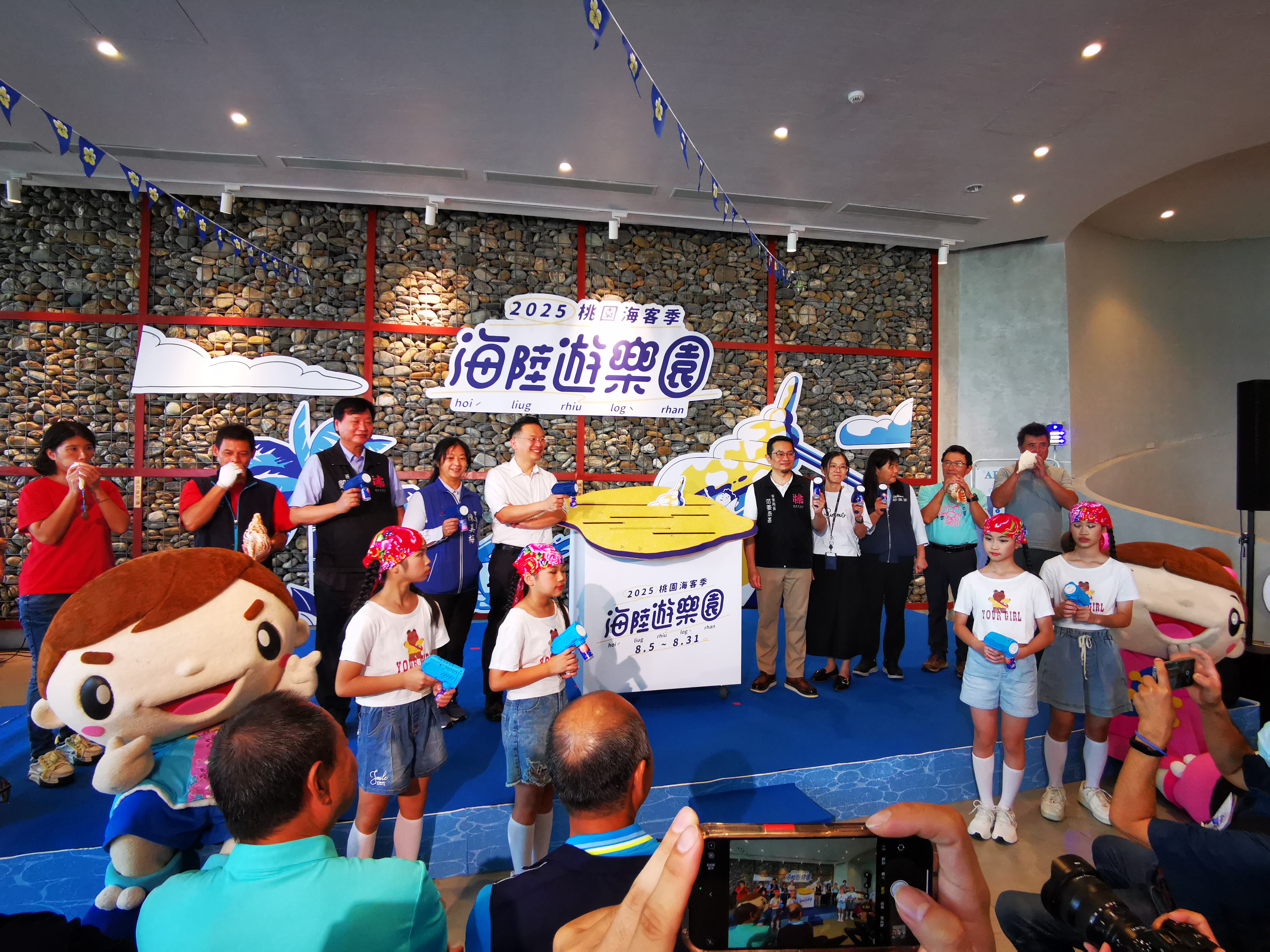 今日包括市議員陳美梅、市府客家事務局長范姜泰基、農業局專門委員胡淑芬、體育局專門委員賴家馨、新屋區長鄭詩鈿、桃園石滬協會理事長許仁郎、桃園郵局局長康嘉芳等均一同出席活動。