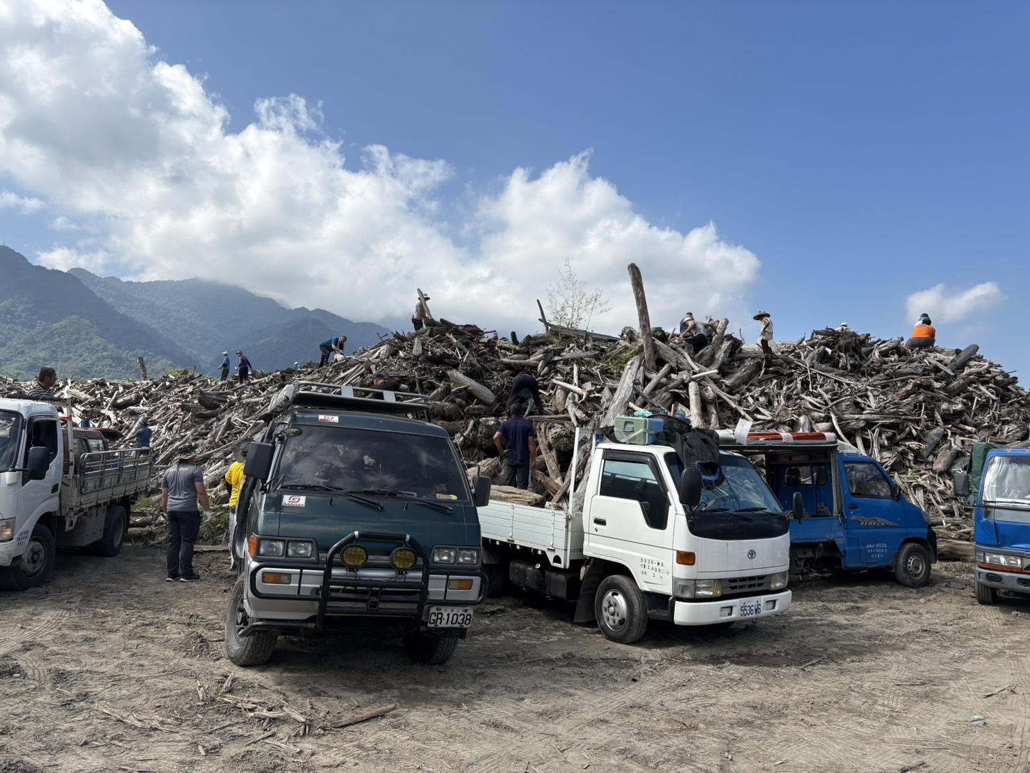 石門水庫阿姆坪臨時堆置場漂流木開放民眾自由撿拾。(林業保育署新竹分署提供).