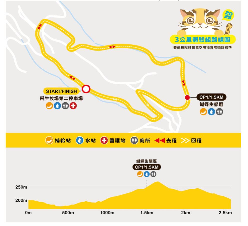 縣府勞青處處長王浩中表示,此次賽事報名費為12公里600元及3公里500元,內容豐富且物超所值,每位參賽者都能獲得價值超過新臺幣1500元的參賽好禮,包括機能排汗衫、運動毛巾、野餐墊、飛牛牧場門票、完賽獎牌及美食小吃等,賽道沿途更安排熱情啦啦隊與能量補給,為跑者全程應援。