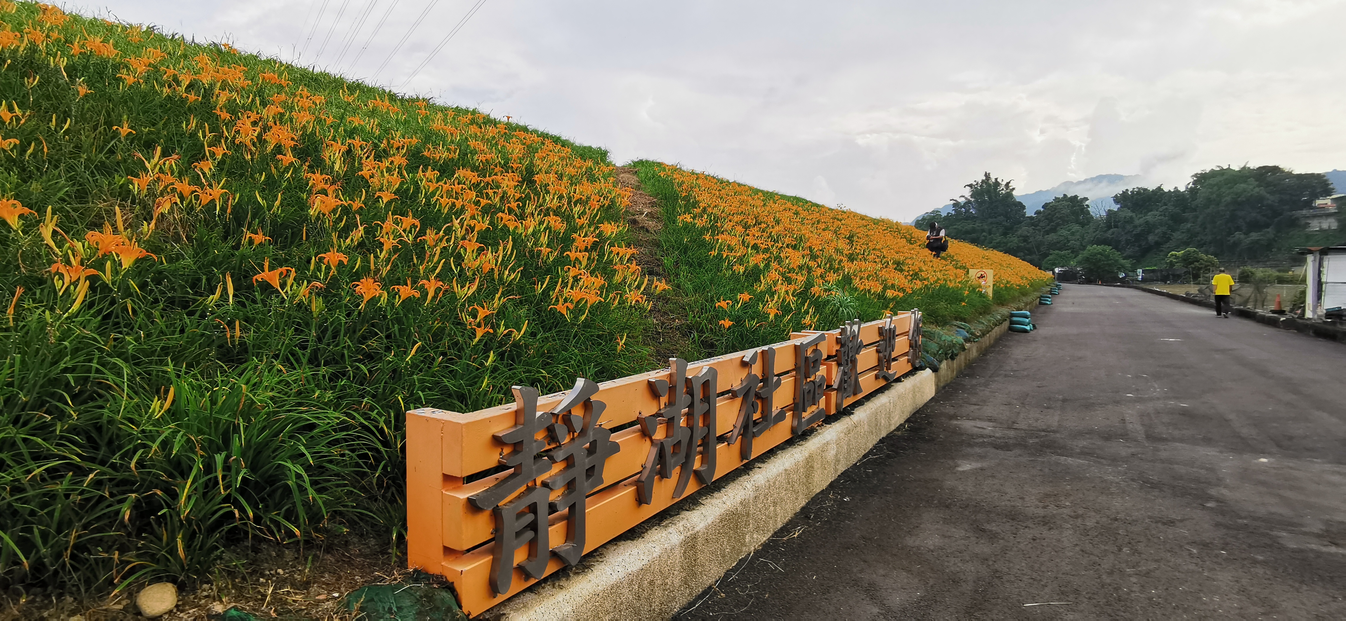 站在堤防上,遠可眺望層巒疊翠的山景,近可欣賞花團錦簇的壯麗,為遊客帶來浪漫與喜悅。該景點小而美,且免費開放參觀,已成為大湖溪畔最受矚目的金色花海之一。