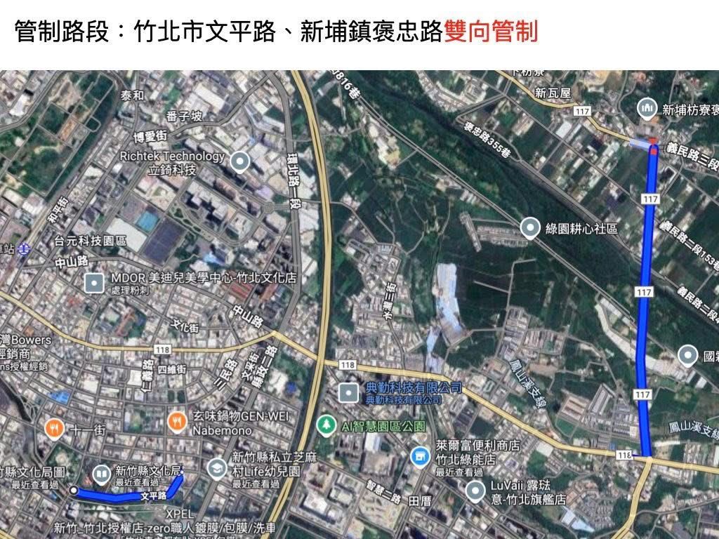 二、勇士組(4.5K):新竹縣文化局→文平路→光明一路→縣政二路→竹118→褒忠路→新埔鎮義民廟。