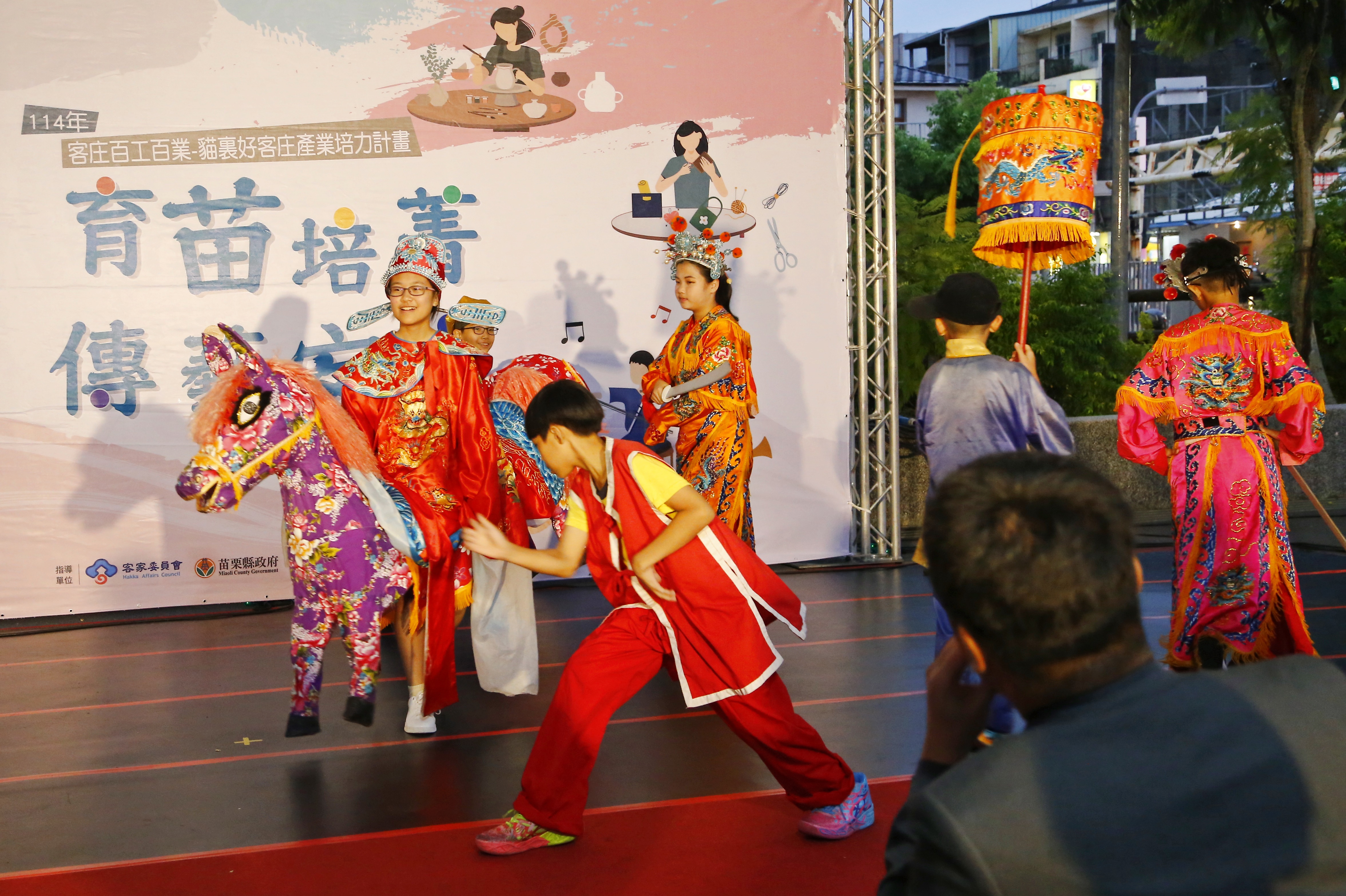 活動更邀集多組在地及具客家特色表演團體輪番上陣,包括:苗栗貓裏客家北管八音班、僑育國小布馬陣、客家女兒陳孟蕎、苗栗市客家兒童舞蹈團,以及舞團DS共舞空間、Lucky Struggle等,從傳統音樂、藝陣舞蹈到現代創意演出,展現客庄文化的多樣性與青春活力,現場氣氛熱鬧非凡。