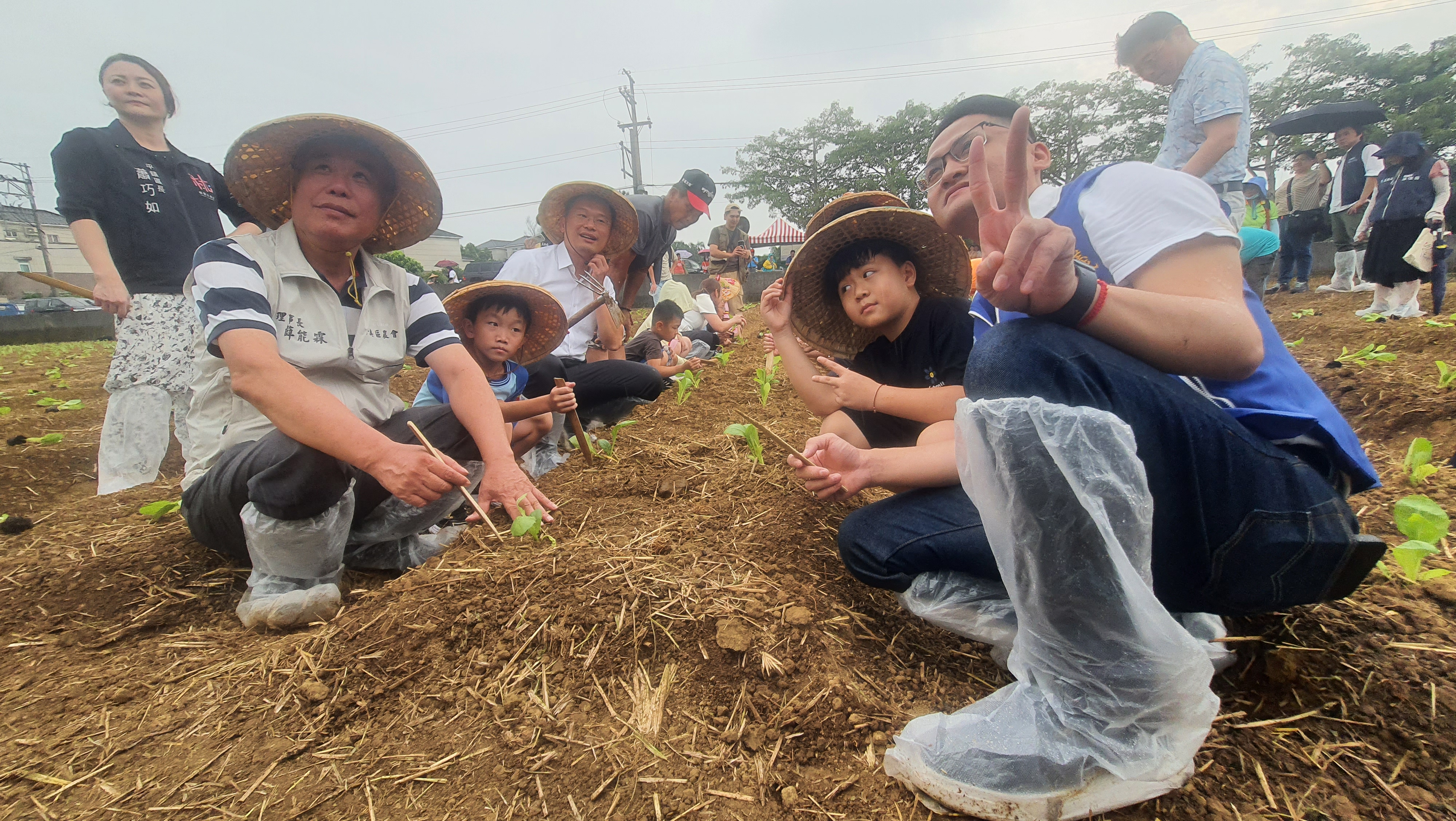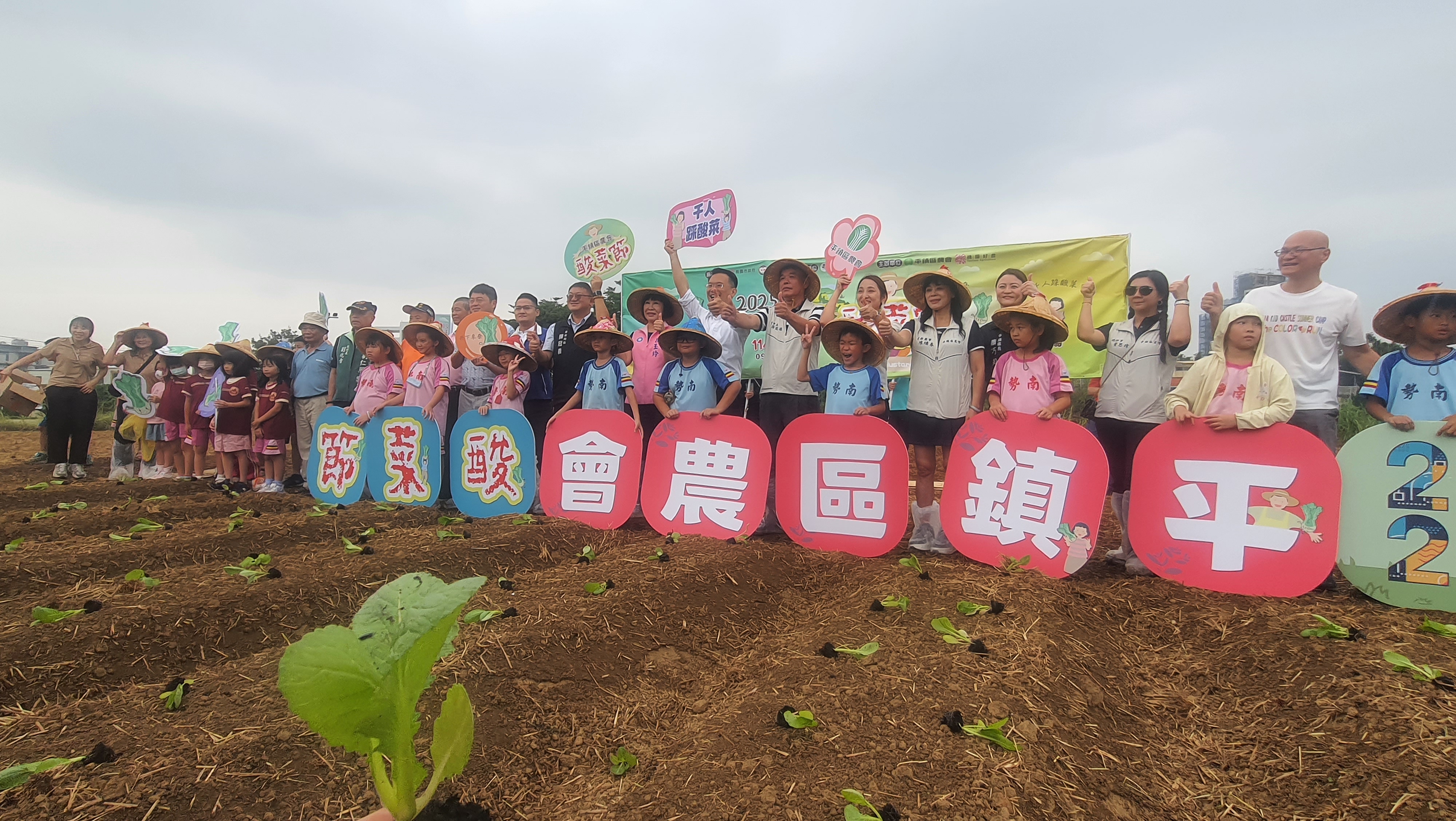 蘇俊賓表示,先前曾參加平鎮區農會舉辦的酸菜節,體驗醃製酸菜的過程,當時就與前理事長莊玉輝約定好下次要從種菜開始進行,今年他也履行承諾,與南勢國小及山峰國小學童一同下田種植芥菜,讓更多小朋友認識芥菜百變的價值。他也感謝薛能霖理事長率領的農會幹部,繼續深耕在地的食農教育,讓更多小朋友學會珍惜這從產地到餐桌,得來不易的食材。