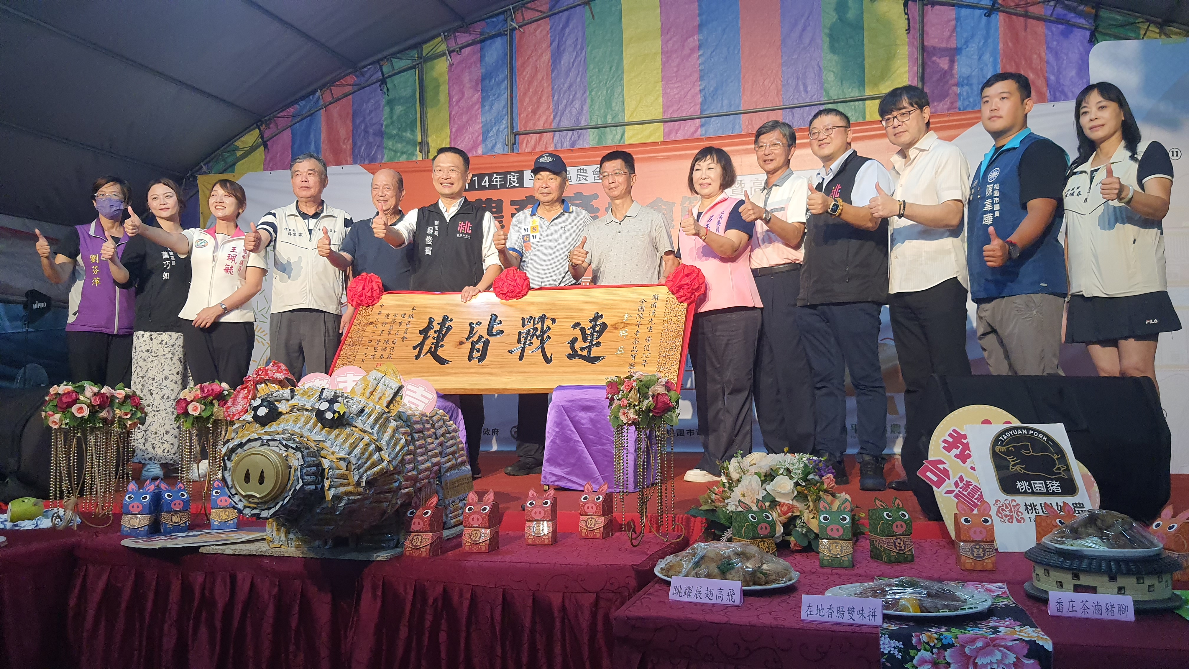 桃園市副市長蘇俊賓19日前往平鎮區,出席「114年平鎮農畜產好食節」活動。蘇俊賓表示,平鎮農畜產好食節已走過20年歷史,農會以一桌桌精緻佳餚呈現平鎮最具代表性的美食佳餚,包括黑毛豬、有機蔬菜、雞肉等,期盼更多市民瞭解、認同桃園在地農產品。