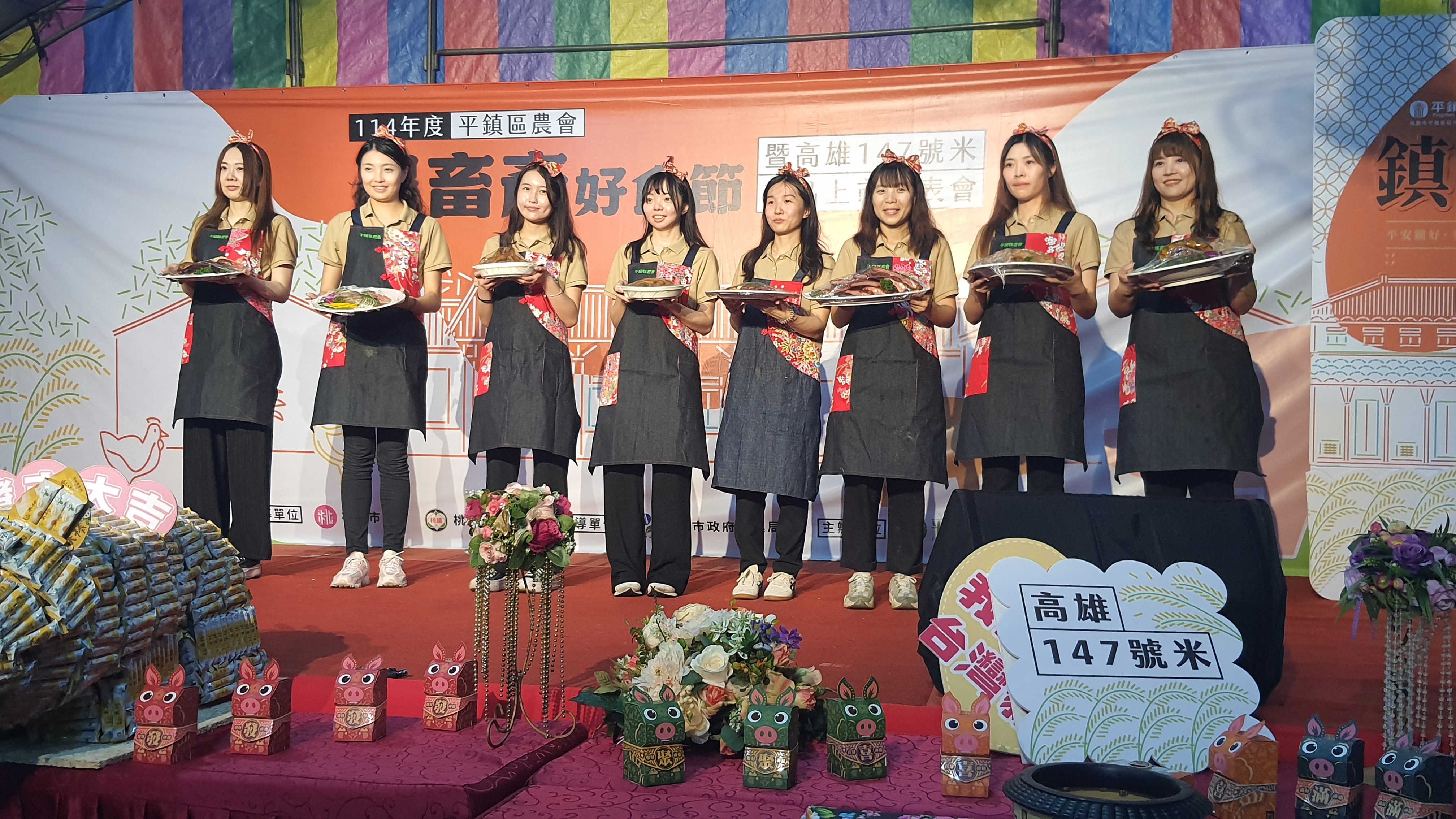 好食節饗宴除了展現在地特色美食如神農水餃、桔醬黃金雞、豬腳麵線外,還有運用平鎮農友種植的「高雄147號」號米烹煮而成的香米飯,現場蘇俊賓也頒發114年平鎮稻米達人選拔賽獎項,表揚並感謝優秀農民。