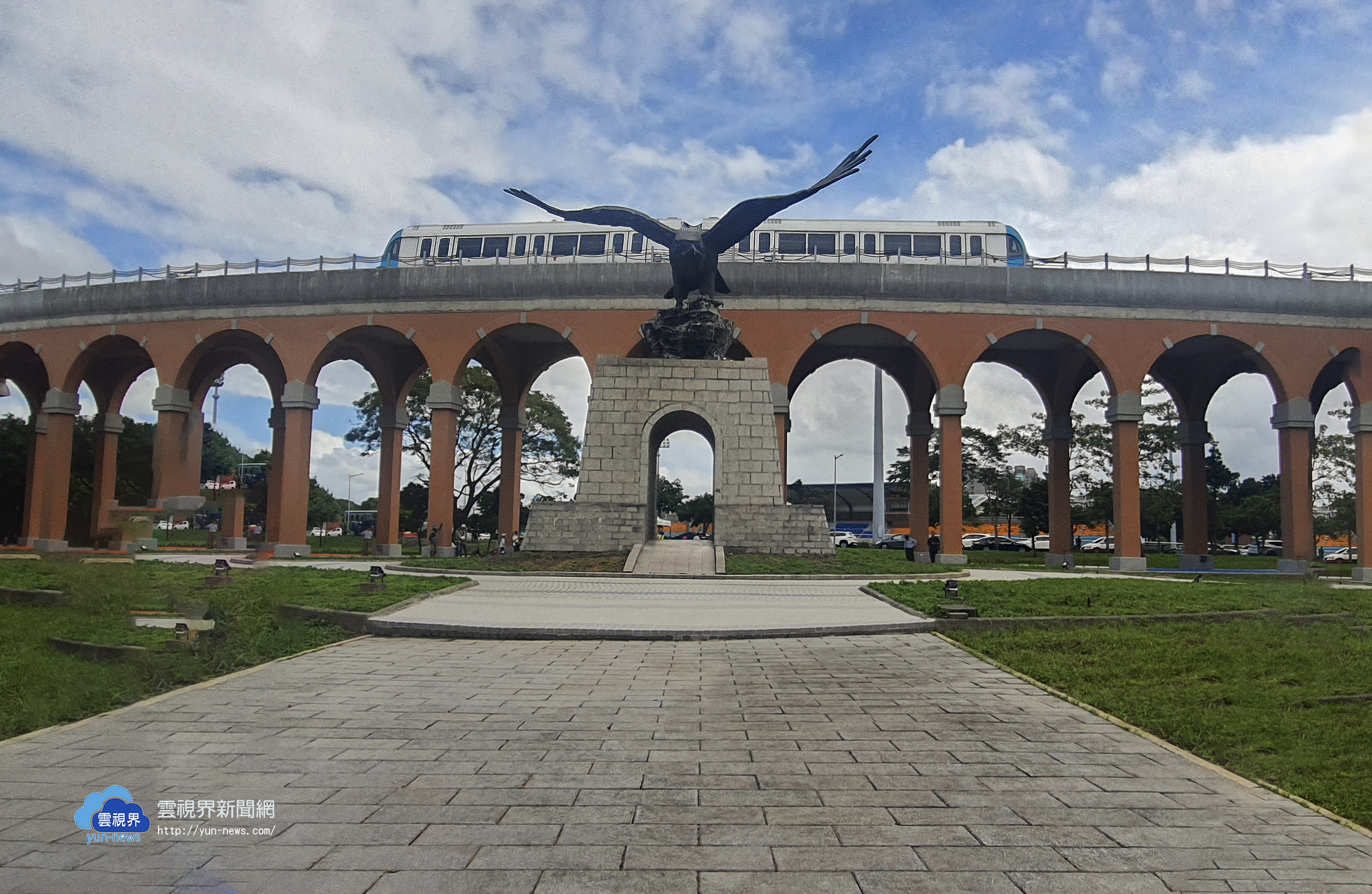 捷運三鶯線是新北市政府重大建設,目前工程進度約達94%,全力朝今(114)年底完工的目標邁進。捷運三鶯線穿越國立臺北大學飛鳶廣場,為融入在地文化特色及校園意象,新北市政府特別以仿紅磚拱型迴廊設計捷運高架橋,市長侯友宜今(22)日上午偕國立臺北大學校長林道通及各級民代出席「捷運三鶯線思古迴廊暨飛鳶廣場啟用典禮」,共同宣布飛鳶廣場思古迴廊正式啟用。