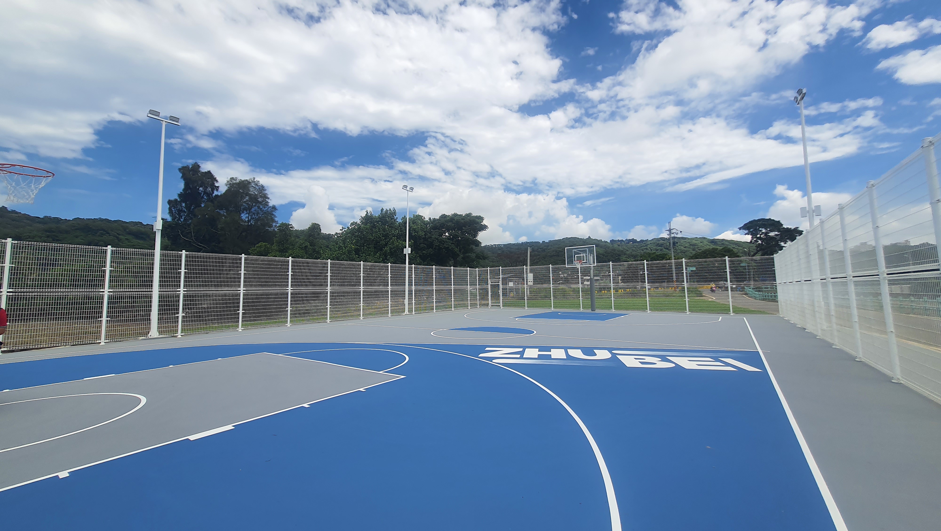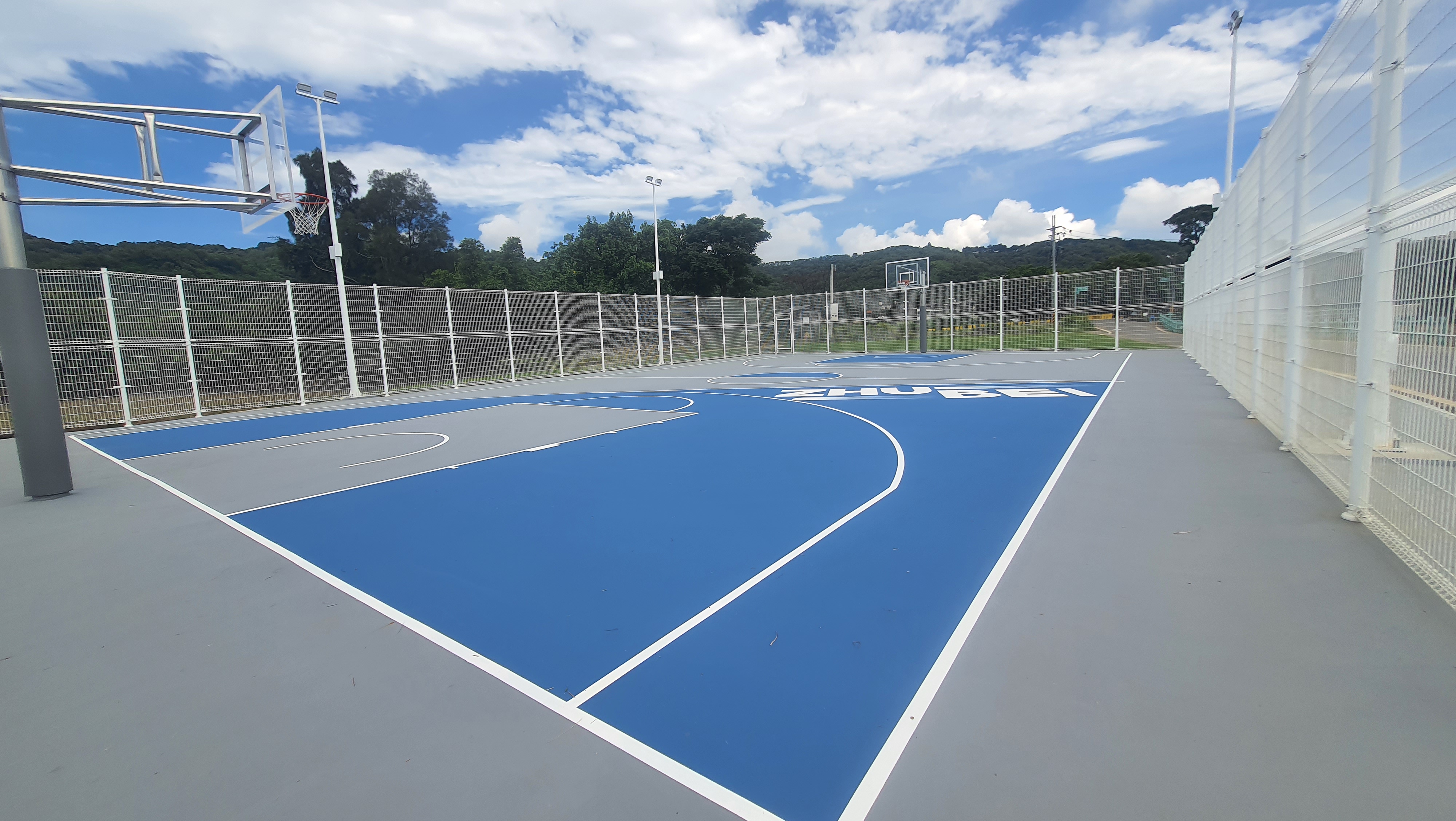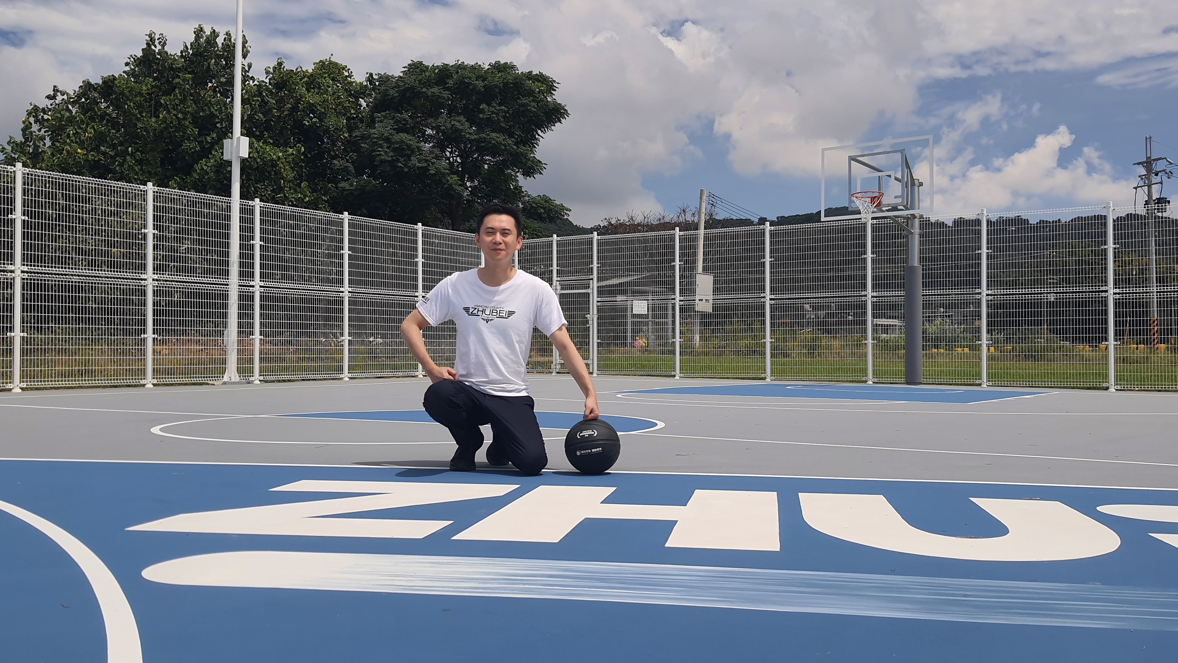 鄭朝方接著指出,星空籃球場延續星際設計概念,以藍灰色地坪結合「ZHUBEI」LOGO,打造專屬竹北市的籃球場風格。值得一提的是,地坪上繪有象徵慧星的線條,呼應「星空」主題,讓球友在群星相伴下揮灑汗水、暢快恣意,打球也能是一種享受。
