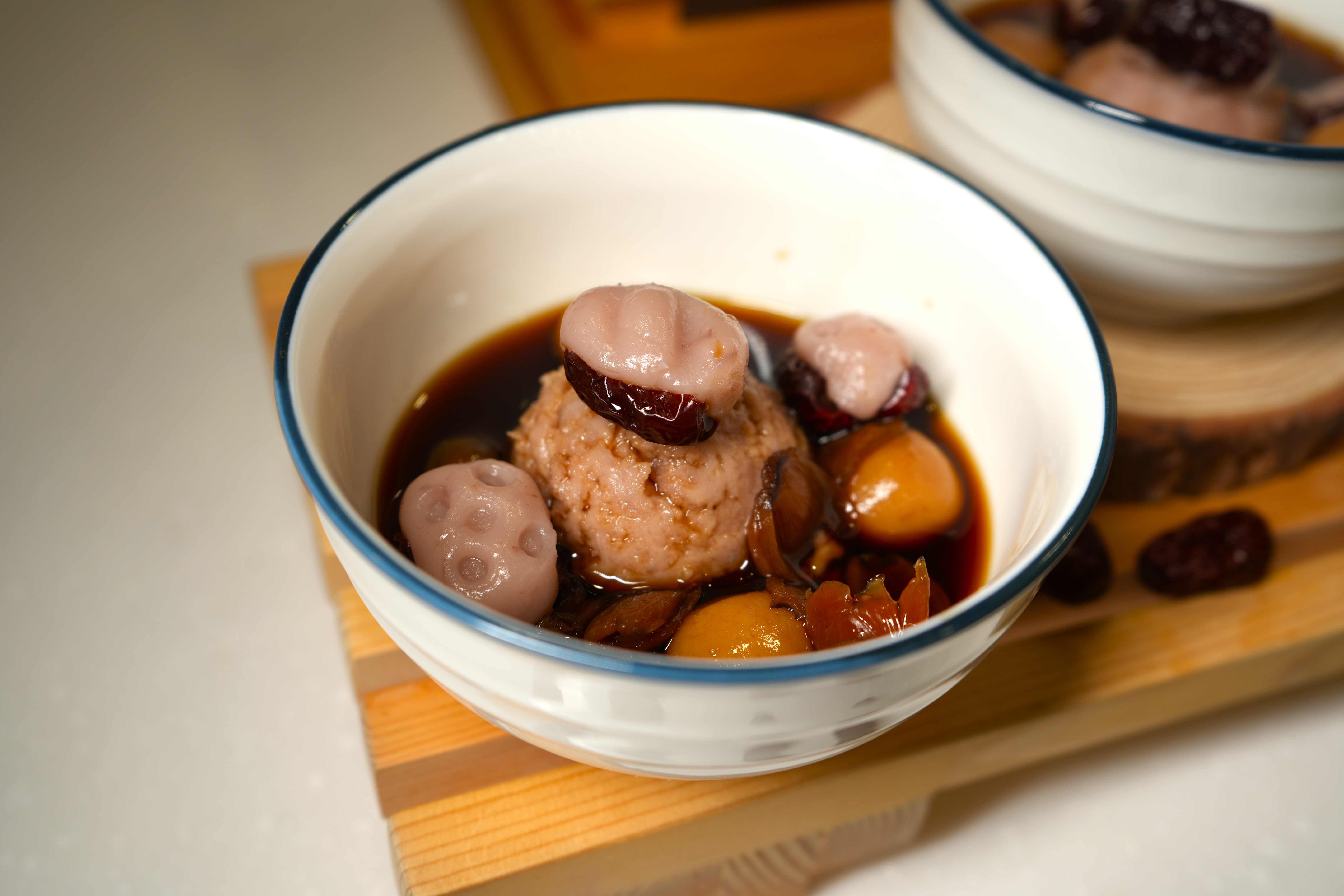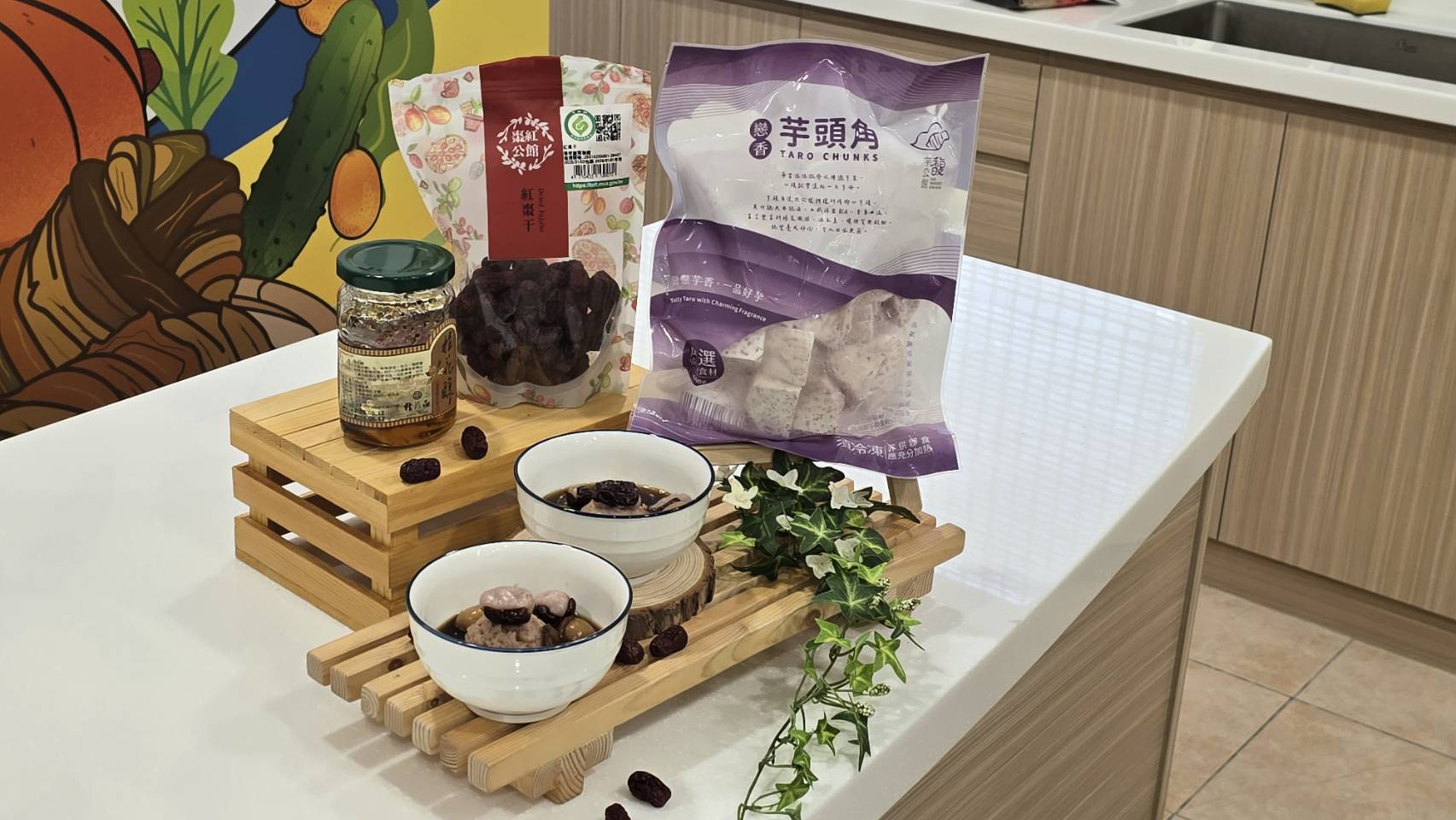 除了舞台上的藝術饗宴,現場更端出「芋頭心太軟」創意甜品與阿波舞團代表分享交流。這道料理由米其林推薦餐廳「膳馨」主廚葉柏漢親自指導,並結合公館農會家政班料理團隊攜手完成,以苗栗盛產芋頭搭配紅棗、桂圓與桂花,