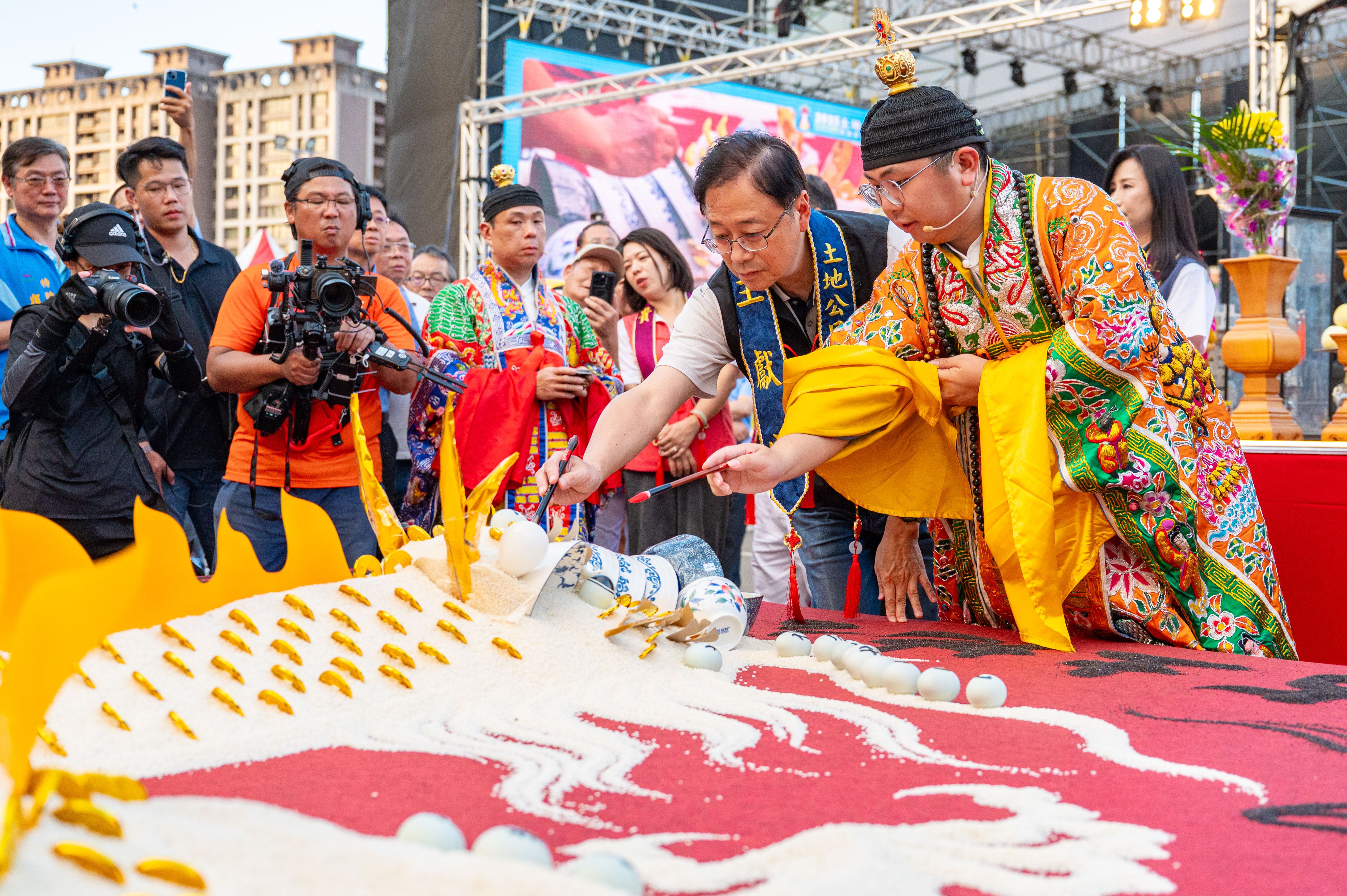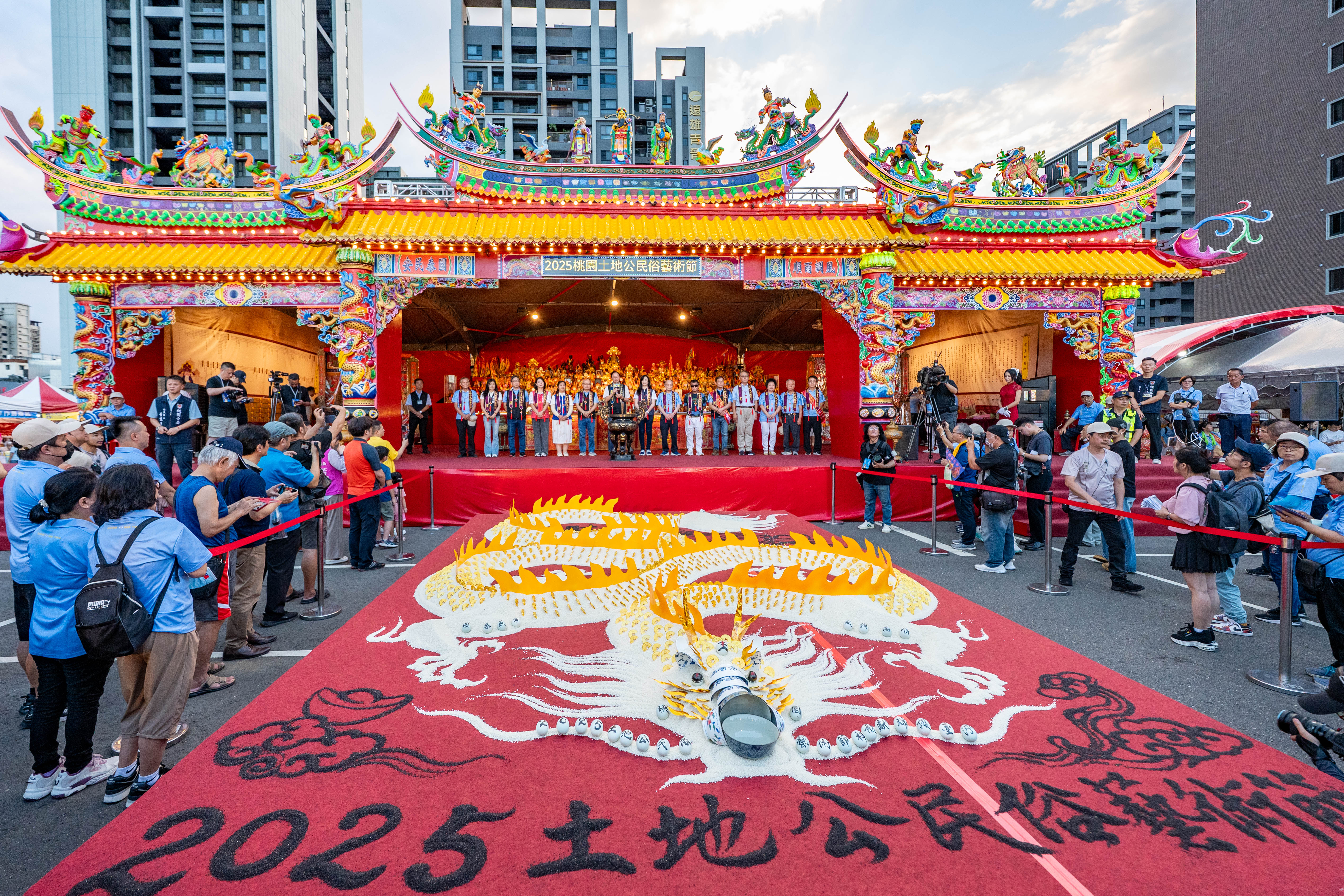 桃園市長張善9月27日下午前往桃園區,出席「2025土地公民俗藝術節」主獻大典,以三獻禮及450公斤白米打造的「米龍」點睛儀式,展現傳統工藝與宗教藝術的融合。張市長表示,土地公信仰彰顯華人社會對土地與自然的敬畏與感恩之情,每年桃園都會舉辦全臺最具規模的「土地公民俗藝術節」,今(114)年已邁入第18屆,活動規模再創新高,來自全臺各地及海外的土地公神尊,從去(113)年的203尊大幅增加至266尊,已成為宗教文化的重要交流平台。