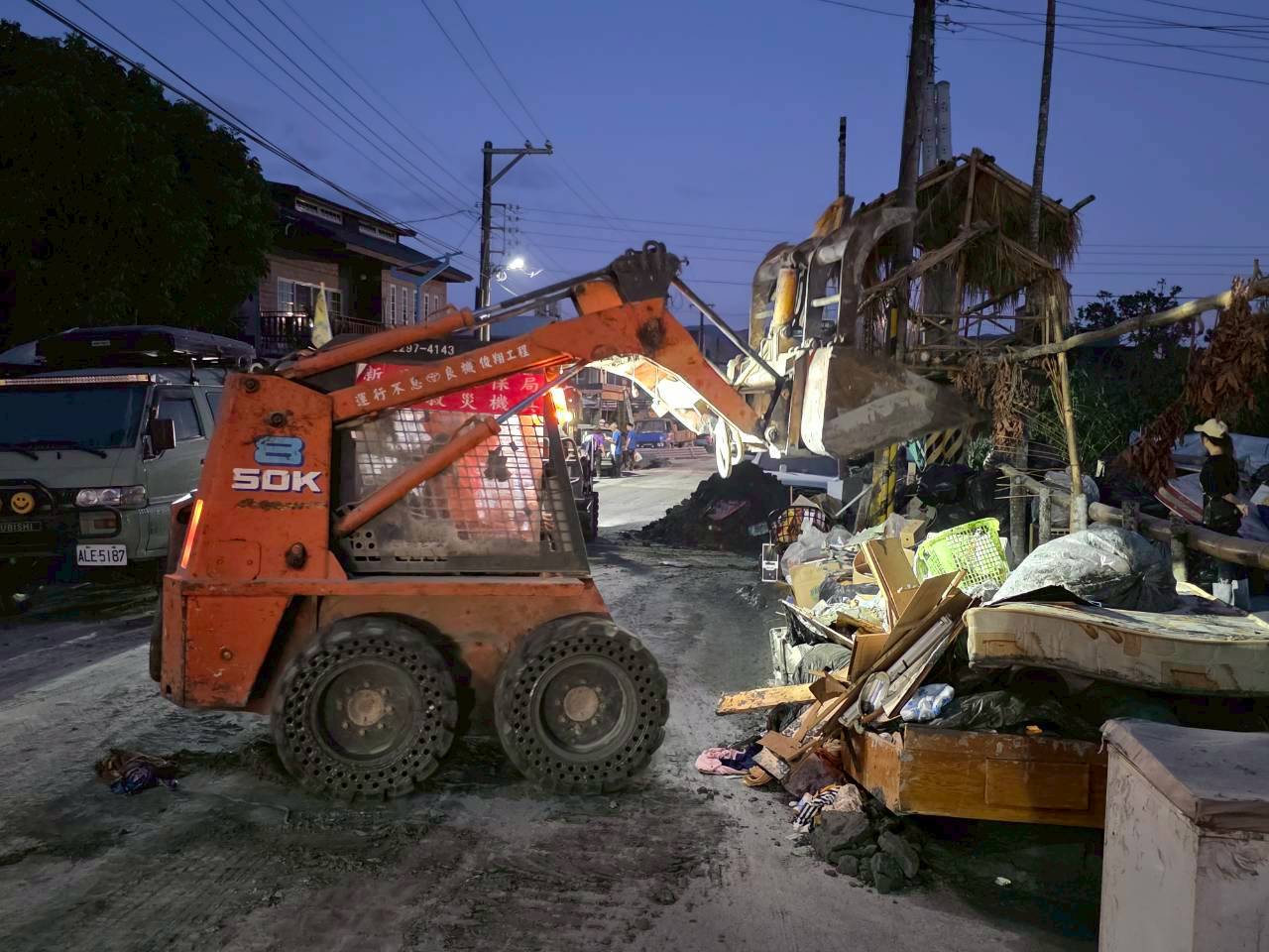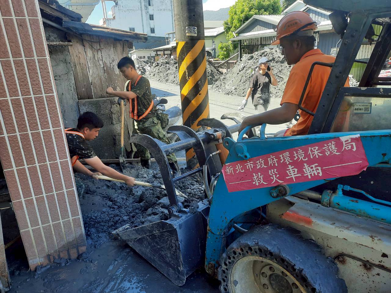 環保局說明,為因應天災後環境復原工作需求,新北市環保局每年訂定「天然災害重機具租賃開口契約」,這次支援花蓮由蘆洲區清潔隊朱弘光隊長及中和區清潔隊鄭忠豪分隊長親自帶隊與開口合約協力廠商前往,20組機具及人力第一天抵達時,雖已是下午時段,但所有人員立刻上線,從晚間7點加班工作到近深夜12點,支援人員和協力廠商全力以赴一起投入清理作業,能多做一小時就多奉獻一小時;另27日起則依據花蓮縣政府分配範圍,執行武昌街、中山路及敦厚路等路段,主要清理淤泥、巨大家具及廢棄物等,並與不同單位,包含國軍、自發性民眾互相搭配合力清理,如有2位來自臺南及高雄的民眾自發性開著怪手到現場,全程與新北支援車輛協力合作,ㄧ個挖土ㄧ個載運,加速清理速度,心無懸念協助災民復原環境。