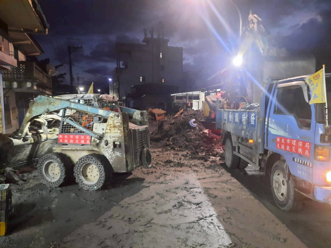 新北市支援人員夜間持續加班清理淤泥     圖/新北市環保局提供