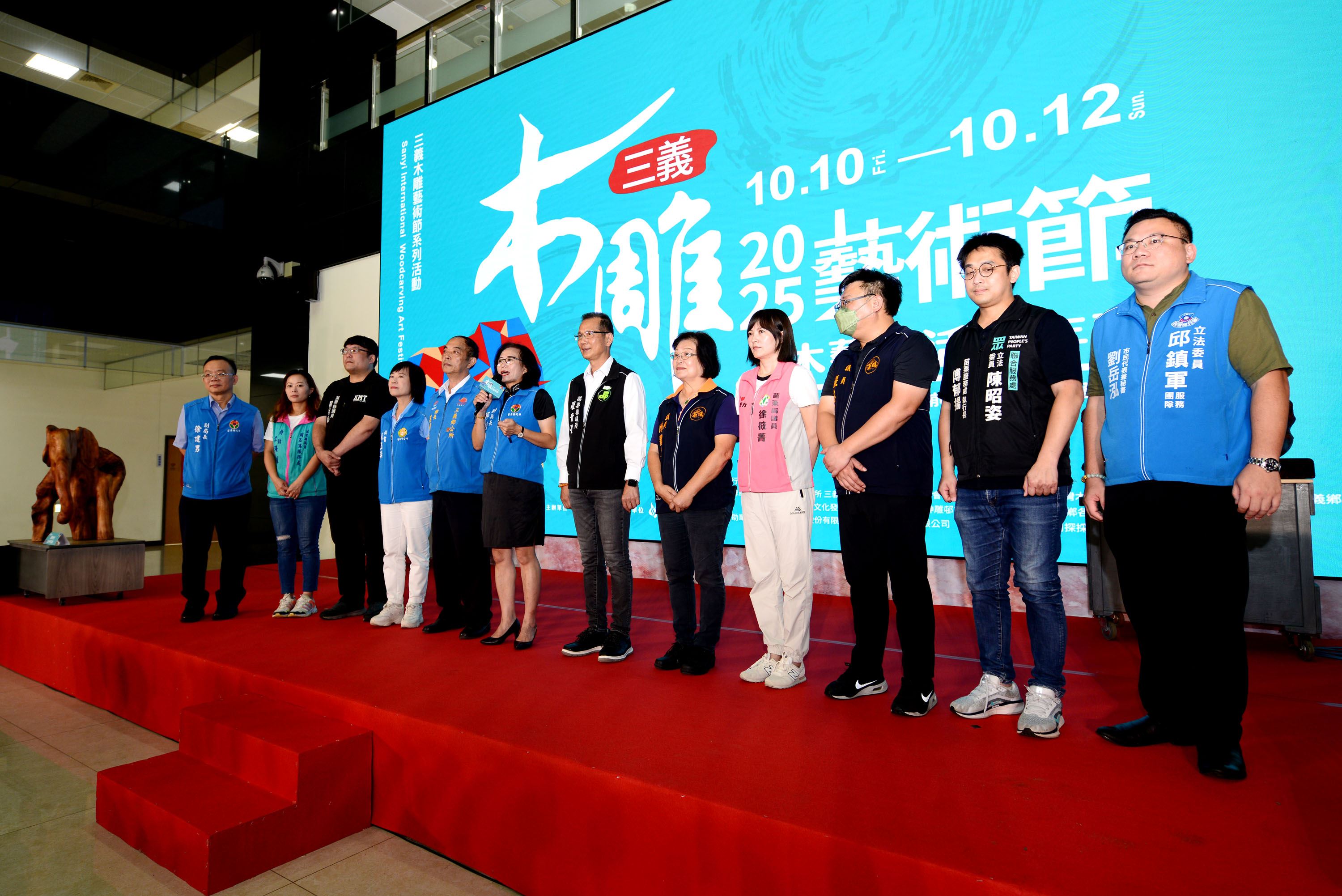 2025三義木雕藝術節將於10月10日至10月12日國慶連假舉行,副縣長邱俐俐、三義鄉長呂明忠、三義木雕協會理事長沈培澤今天在縣府召開記者會宣布2025三義木雕藝術節正式起跑,也歡迎國人在木雕藝術節期間到三義一遊,來親身感受木雕藝術之美,品味慢遊山城的樂趣。活動詳情請上http://www.sanyi-woodart.com.tw網站查詢。
