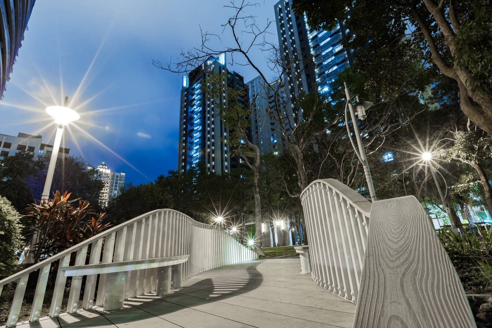 橋體以白色為主色調,減少環境干擾並營造純淨視覺感受,搭配有機曲線與光影變化,在日夜間展現不同姿態,宛如城市的呼吸。 竹北市公共建設此次雙獎齊獲,將成為推進城市美學的重要助力。