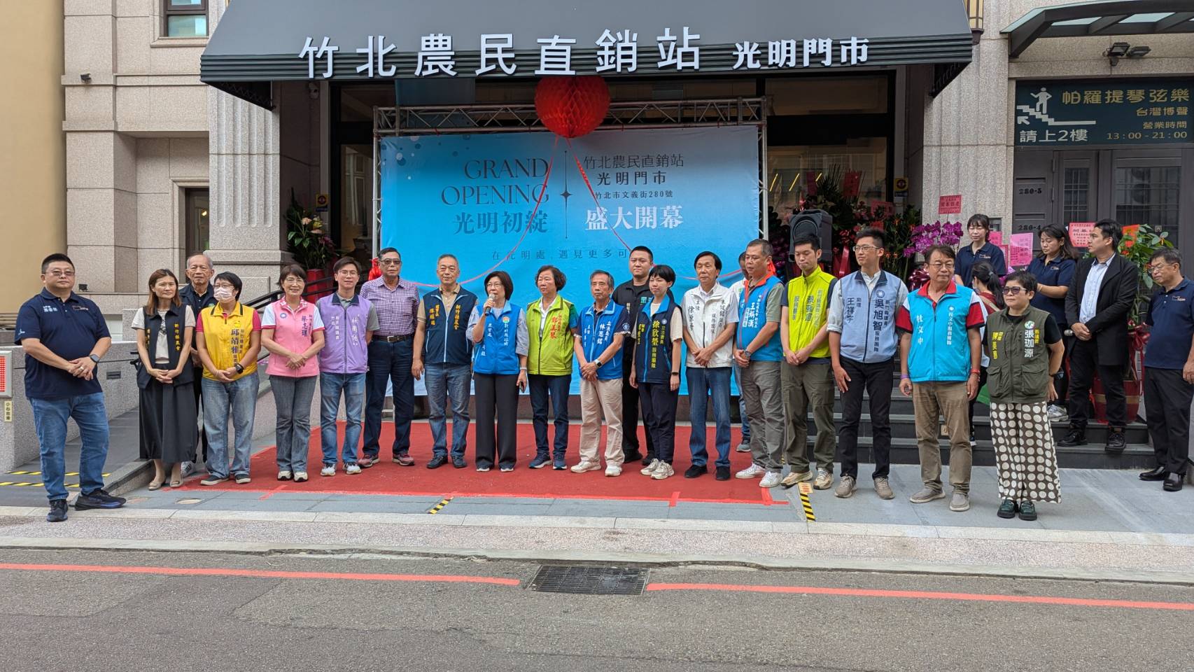 新竹縣竹北市農會為了擴展農產品多元行銷通路,在竹北市光明商圈成立第3個農產品銷售據點「竹北市農民直銷站光明門市」,今(3)日隆重開幕,成為新竹縣政府輔導成立的第17個農產品銷售據點,提供農友自產自銷的行銷通路,降低農民生產成本,提高直接收益,並協助供貨農友申請臺灣農產品生產追溯條碼標籤,期以提供消費者安心、安全、可追溯的農產品購買環境。