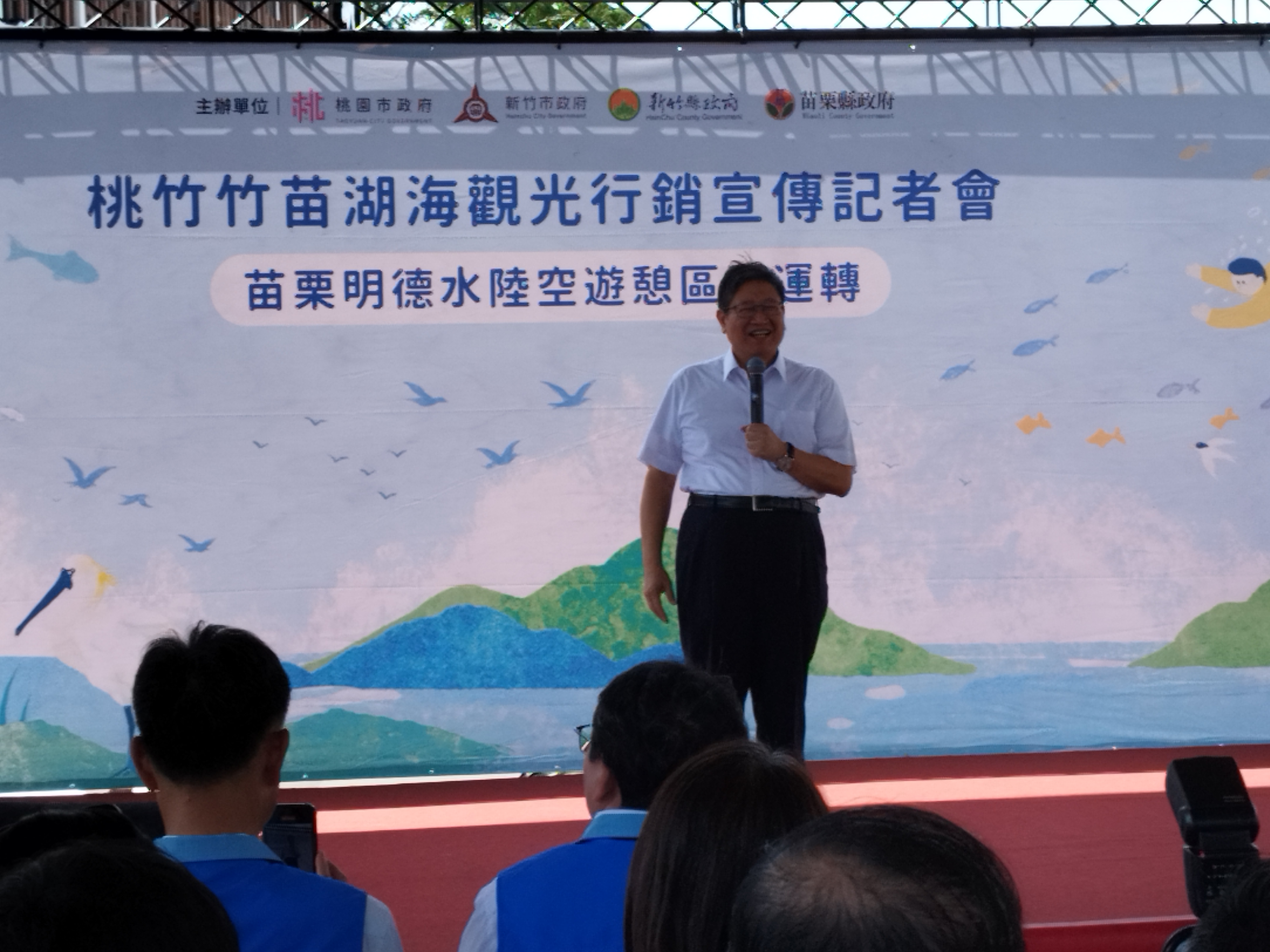 本次會議的另一亮點是四縣市首長共同參與「桃竹竹苗湖海觀光行銷宣傳記者會」。楊文科於會中大力推廣新竹縣的觀光成果,特別提及新竹縣今年剛榮獲觀光署「觀光100亮點獎」殊榮的峨眉湖。峨眉湖四季風光宜人,環湖步道完善,適合漫步與健行,旅客亦可搭乘綠色電動遊艇環湖,沿途欣賞湖面倒映的山色美景,並順道走訪全台最高的大佛像,體驗宗教人文之美。