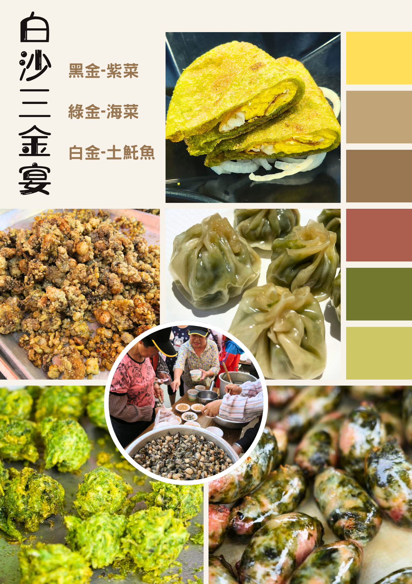 旅遊處日前亦邀集多個相關單位實地會勘場地,針對行軍動線、交通維持與活動安全進行討論與確認。縣府感謝各單位的協助與支援,並特別感謝白沙鄉公所熱情籌辦「三金饗宴」,以「海菜、紫菜、土魠魚」為主題,設計出道道澎湖味十足的特色料理,豐盛菜色包括:紫菜丸、紫菜土魠魚丸湯、紫菜冬粉、海菜香腸、海菜餅、海菜餃飩、海菜小籠包、土魠魚/牡蠣羹等。