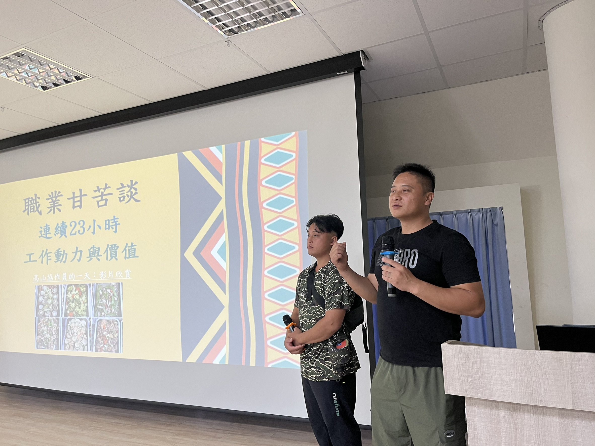 活動邀請兩位家扶原鄉山林職人現身分享生命故事—長年在山林間砍竹維生的竹林職人黃仁忠阿公,以及翻山越嶺、肩負物資運送任務的高山協作員張羽駿爸爸。雖然黃仁忠阿公臨時未能出席,但外孫女黃翊穎代為分享,談及自小目睹家人於竹林中辛勤工作的身影,深刻呈現原鄉家庭面臨的就業挑戰與生命韌性。