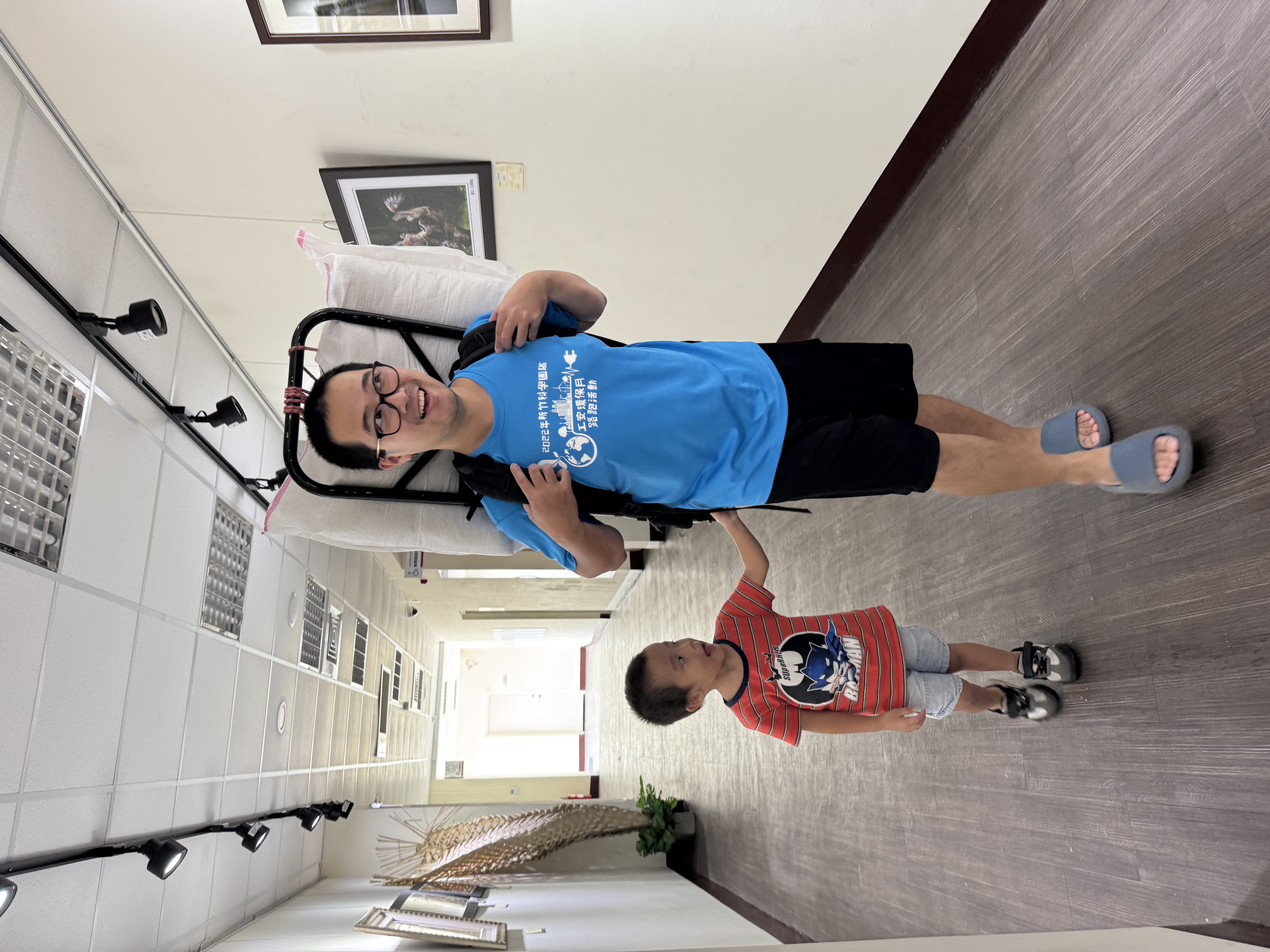 圖1.高山協作員-張羽駿 圖/新竹家扶中心提供 圖2. 親子體驗高山協作員揹負重物(爸爸挑戰30公斤重物)