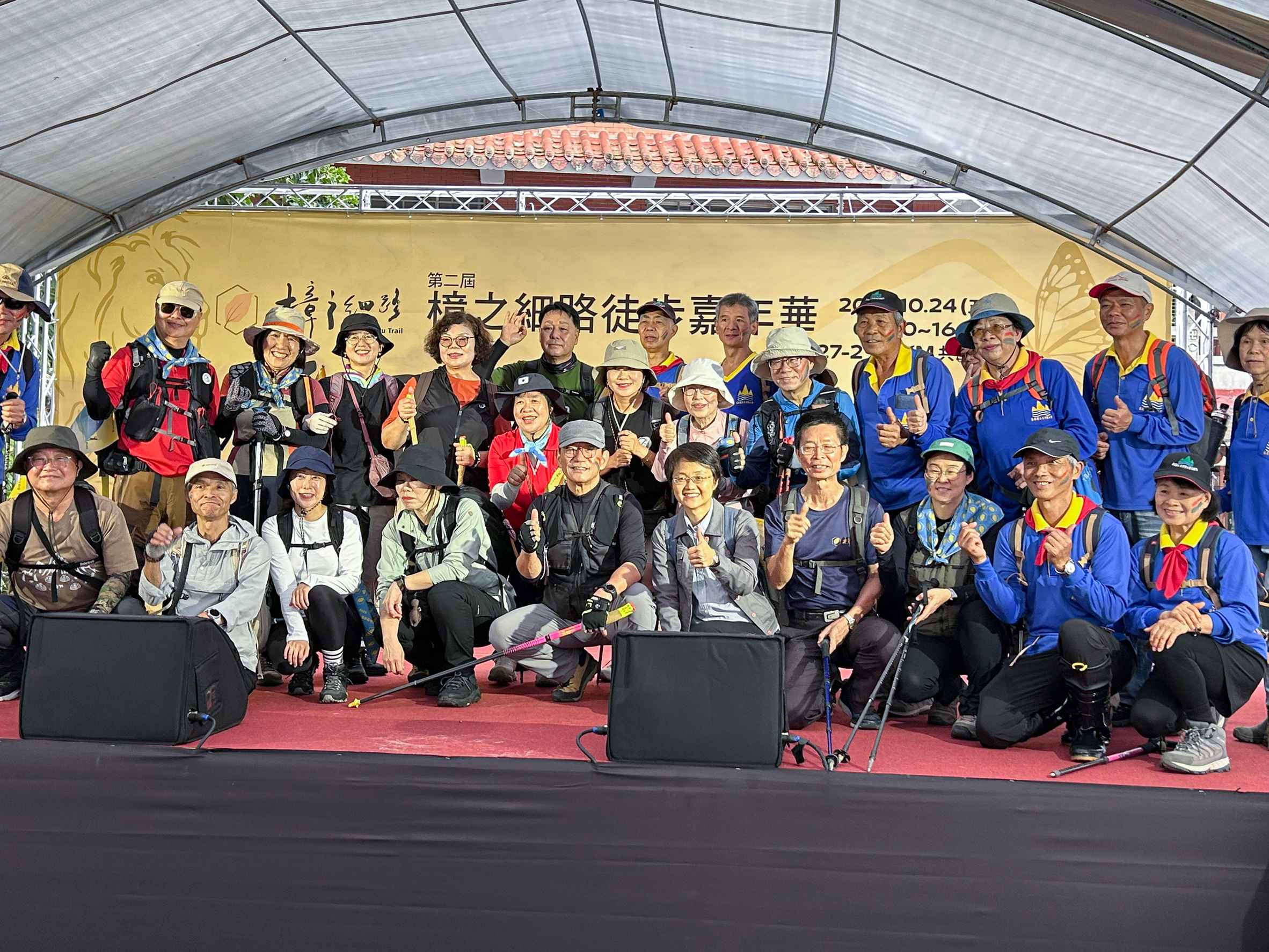 客家委員會主任委員古秀妃10月24日於苗栗縣南庄鄉出席「2025樟之細路徒步嘉年華」,與500多位山友、日韓步道夥伴及韓國電影明星柳承龍,徒步全程樟之細路步道區段10公里活動,感受臺三線山林之美。
