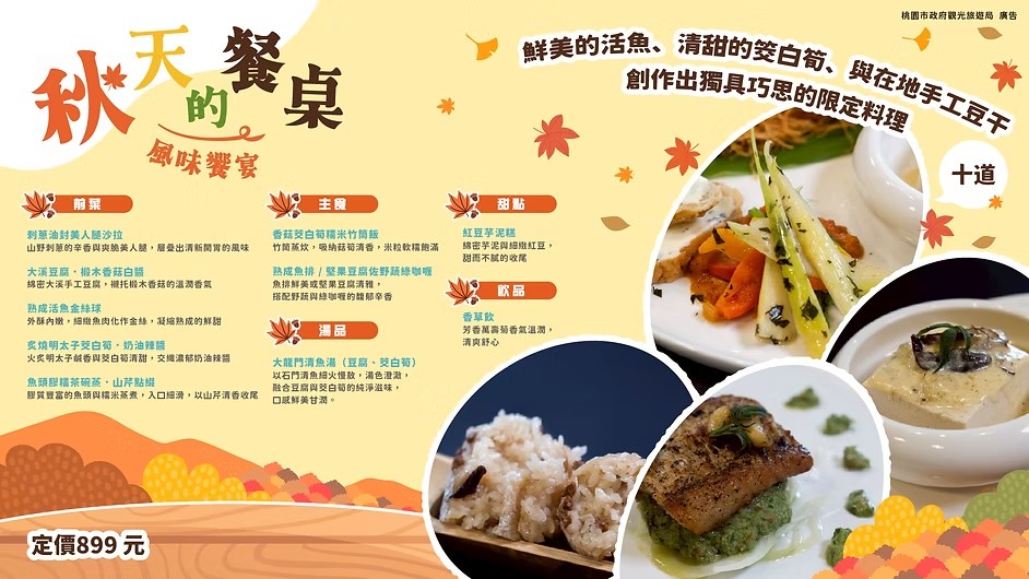 觀旅局指出,今年「大龍門鱻漫遊嘉年華」以「鱻、漫、遊」為三大主題,結合自然古道、美食饗宴與家庭休閒活動,串聯大溪、石門與龍潭三大觀光重鎮及在地活魚餐廳業者。首週「姆明健走」活動圓滿落幕後,第二週將接力推出「秋天的餐桌」限定晚宴活動,讓民眾從白天走入山林、夜晚坐上長桌,共享屬於桃園的秋日風景。