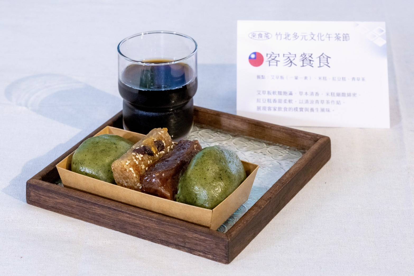 台灣客家餐食組有軟糯飽滿的艾草粄與香甜紅豆糕 圖/竹北市公所提供