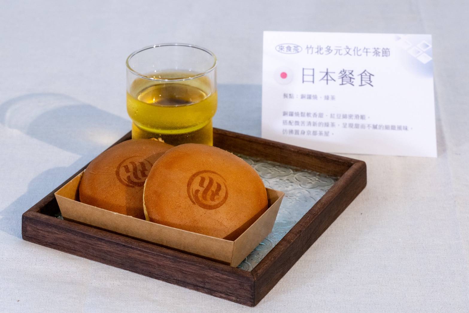 日本餐食組以外皮鬆軟的銅鑼燒搭配微苦清新的綠茶呈現細膩風味 圖/竹北市公所提供