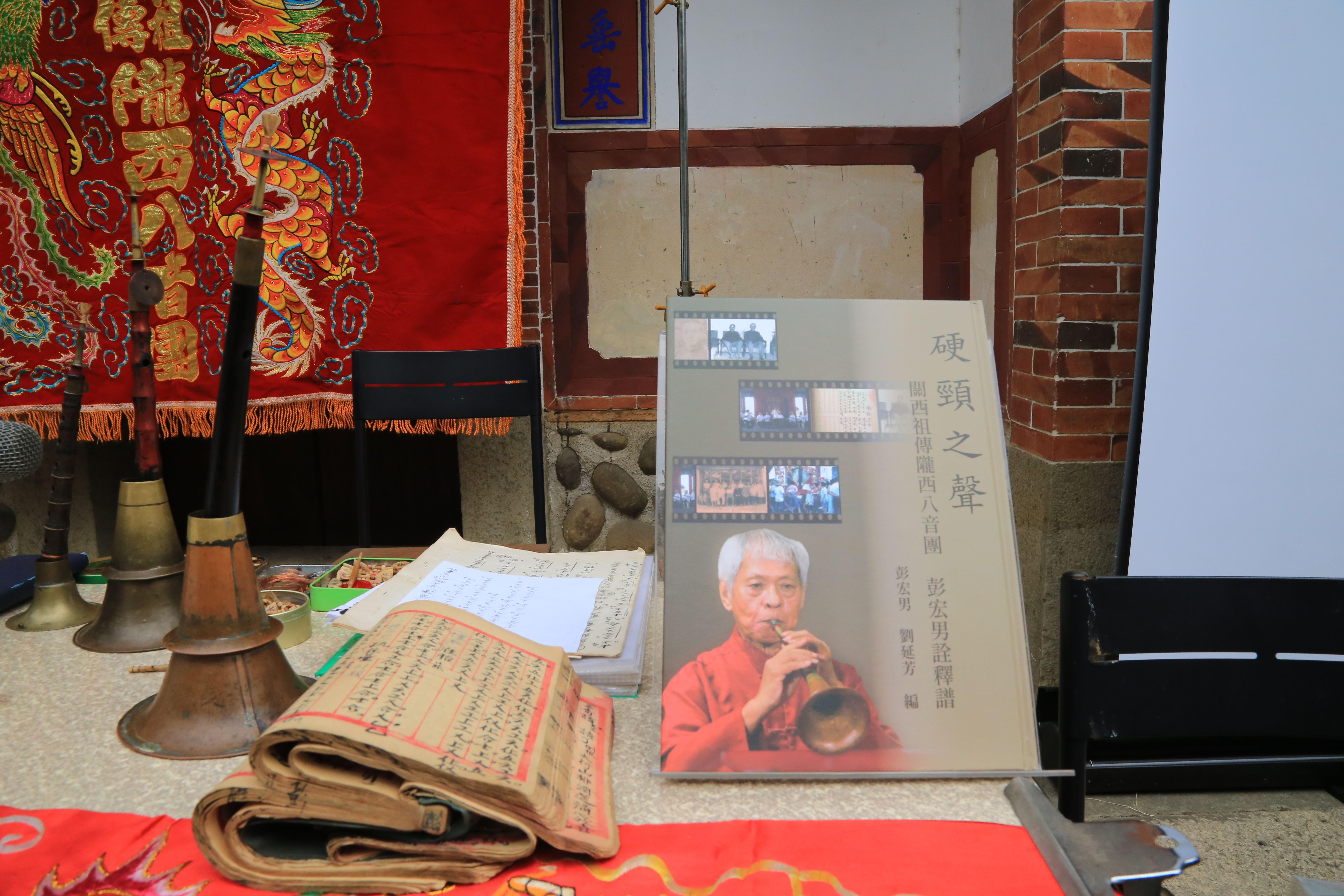 為推廣客家傳統音樂文化,新竹縣政府與文化部文化資產局共同補助關西祖傳隴西八音團出版《硬頸之聲-關西祖傳隴西八音團 彭宏男詮釋譜》,書中收錄多首重要的客家八音吹場樂和絃索調樂曲,以及此團所特有、絃索調【大開門】,10月31日於陽明交通大學客家文化學院忠孝堂舉辦新書發表會。