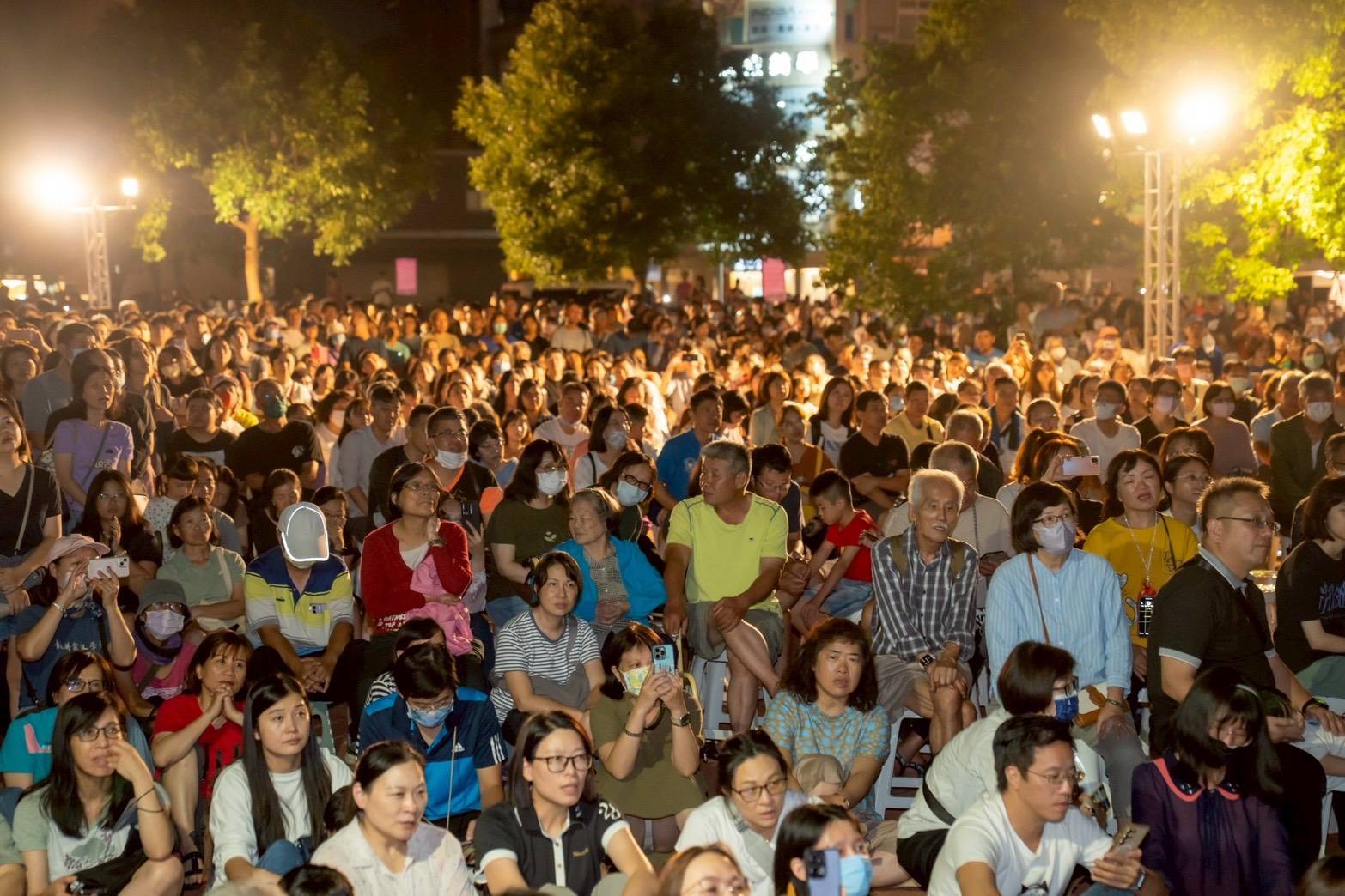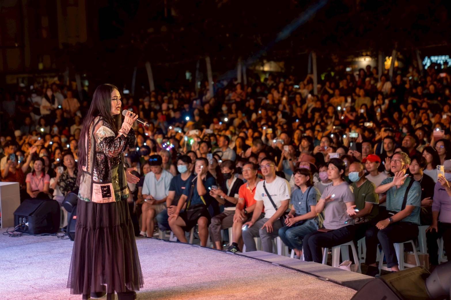 現場除主舞台外,竹北市公所更貼心規劃三處副舞台,除了一般席也設有敬老席及公益團體席次,從開演前就座無虛席,連走道都擠滿觀眾。秋夜微涼、星光閃耀,三位重量級女歌手辛曉琪、萬芳、潘越雲輪番登場,讓竹北成為名符其實的「露天小巨蛋」。