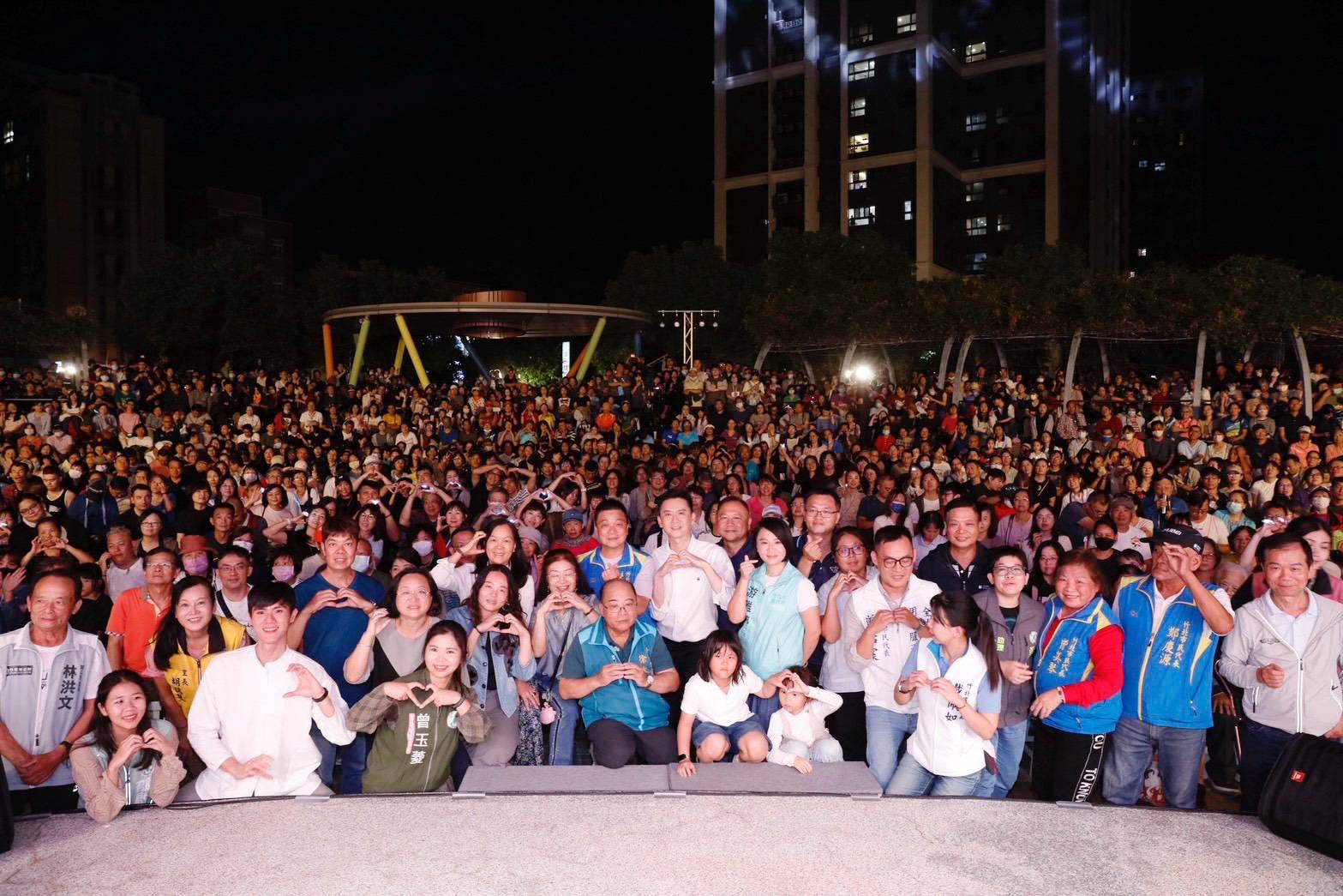 竹北週末相當熱鬧,除了黃仁勳參與台積電在竹北舉辦的運動會之外,11月8日晚間,「竹北超越竹北」系列「三天后金曲之夜」也沸騰登場,在新崙公園熱力開唱,吸引逾萬名市民同時湧入,創下新崙公園啟用以來、也是竹北西區歷來單場活動最多人次紀錄。
