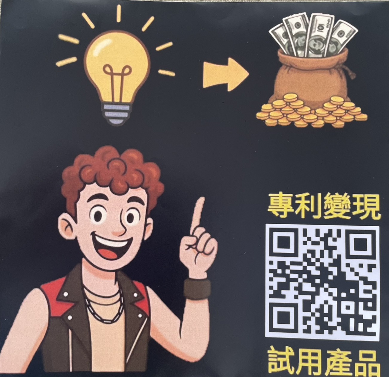 圖五、清大周卓煇特聘教授指導團隊開發【專利變現】知識產品標誌:可專利的點子也可變現金,有興趣使用的,可以掃描圖中二維碼。
