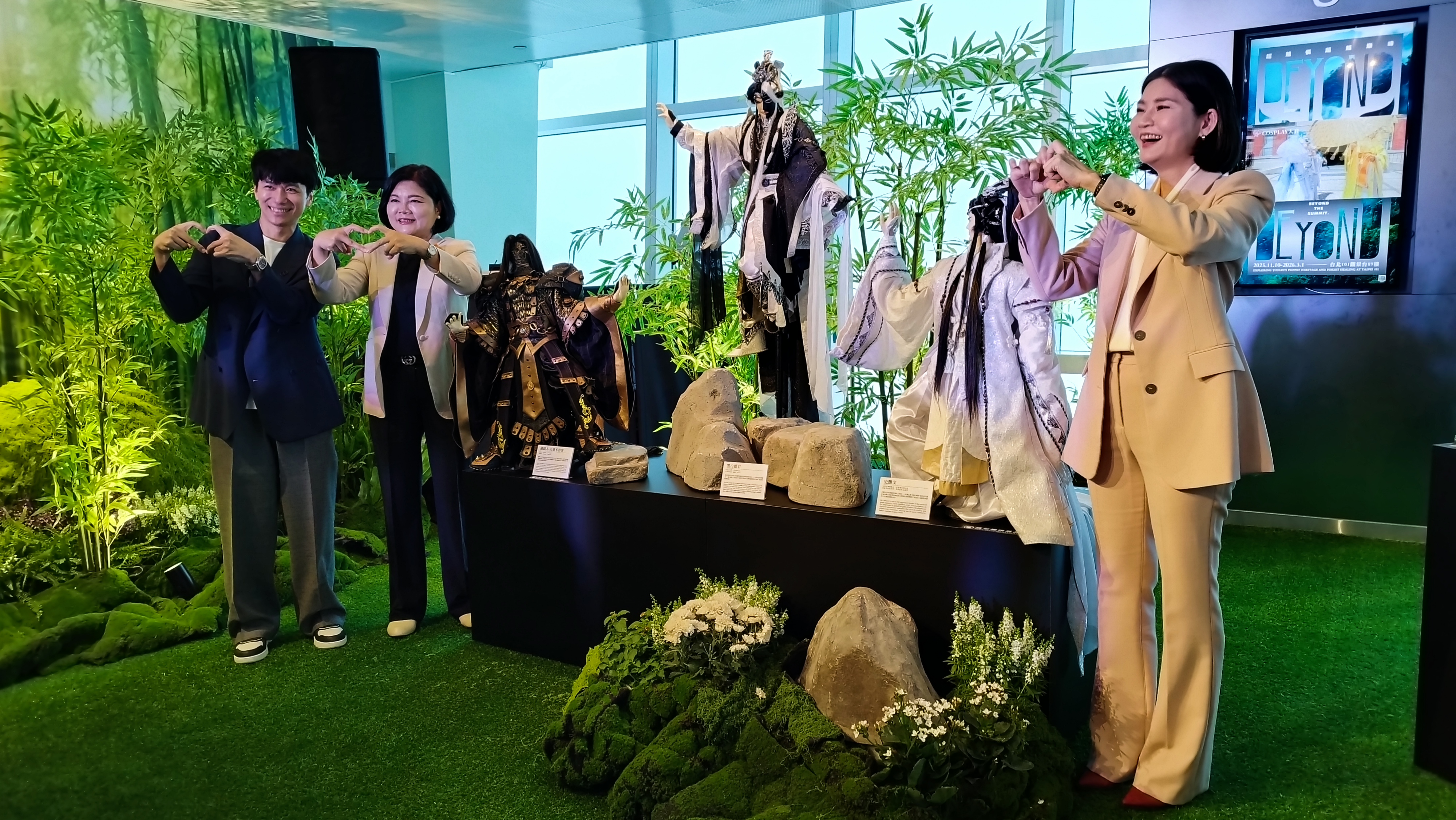 台北101董事長賈永婕表示,作為全球知名的地標建築與文化地景,台北101長期致力於推動藝術、文化與永續共生的理念。此次與雲林縣政府合作,不僅展現臺灣地方文化的獨特魅力,更讓世界在382公尺高空的台北101 89樓秘境花園觀景台,感受布袋戲的精緻工藝與竹林的生命美學。