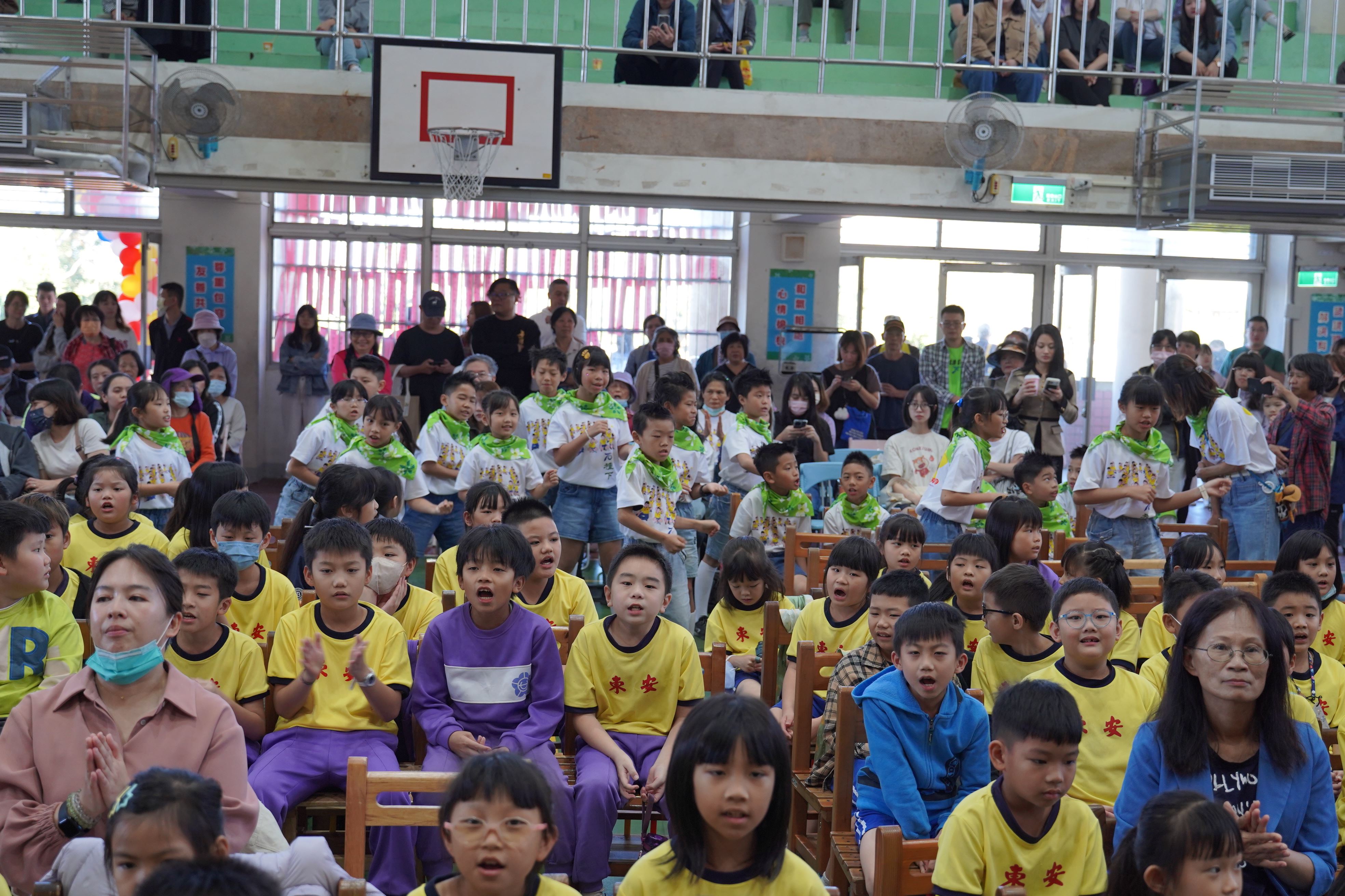 東安國小學生歡迎楊縣長蒞臨校慶活動,特別合唱一曲愛客樂樂團邱廉欽-阿Kim老師,專為學校七十週年校慶創作一首校園客家歌曲《種下》,楊縣長鼓勵孩子都能學習歌中描寫「前人種竹 後人遮陽」的精神,種下「一隻夢」、「一份愛」、「一條歌仔」,打造幸福的心願。