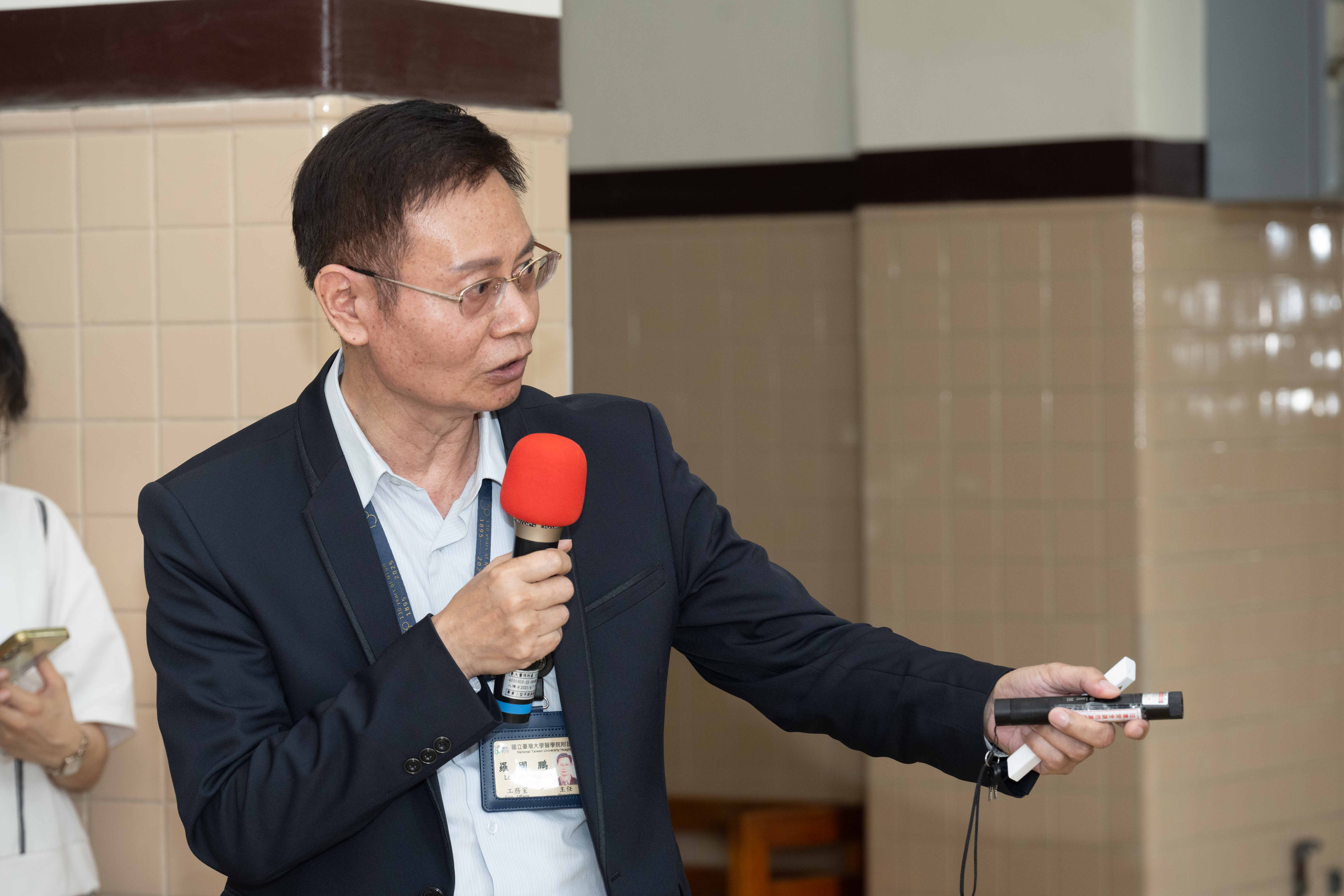 臺大醫院守護文化資產 重現百年時光意象 本館正立面山牆電氣時鐘復刻啟用-工務室羅國鵬主任介紹修復過程.