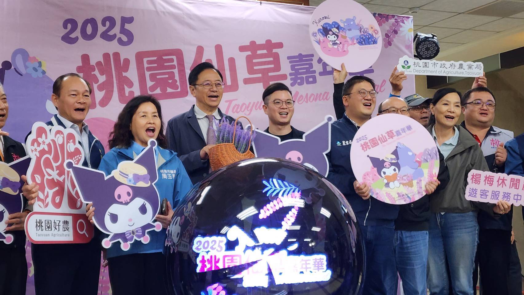 11月18日於桃園市政府舉行宣告記者會,由市長張善政率領農業局、文化局及楊梅區公所等單位共同出席,並與貴賓一同啟動象徵「希望與綻放」的3D全息光球,宣告「桃園仙草嘉年華」正式啟動。 桃園市長張善政表示,仙草嘉年華今年從11月22日起,一連16天在楊梅登場,展區結合2公頃仙草花與2.1公頃波斯菊花田,並邀請人氣明星酷洛米(Kuromi)擔任花之使者,帶領民眾走入夢幻的紫色仙境,以「花田 × 文化 × 可愛IP」呈現桃園冬季最浪漫的節慶風景。