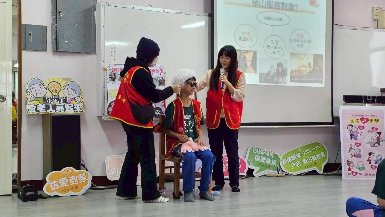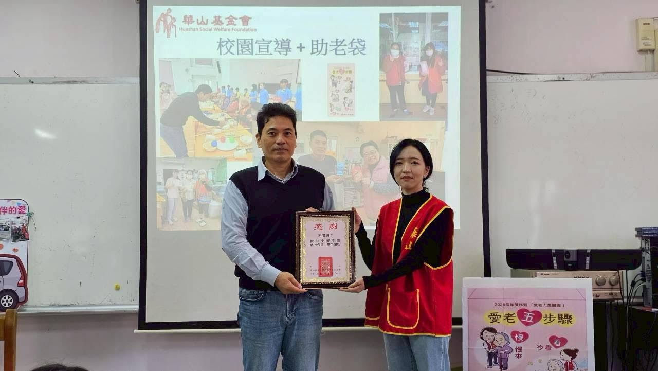 華山基金會發起「愛心助老袋」,籌集服務經費,提供三失(失依、失能、失智)老人免費的到宅訪視、居家照顧等服務。新竹縣新豐鄉新豐國中多年倡導社會公益,11月20日(四)雙方共同舉辦校園敬老活動,由該校同學陪伴長者體驗高爾夫球揮桿,用年輕行動力關懷老人。