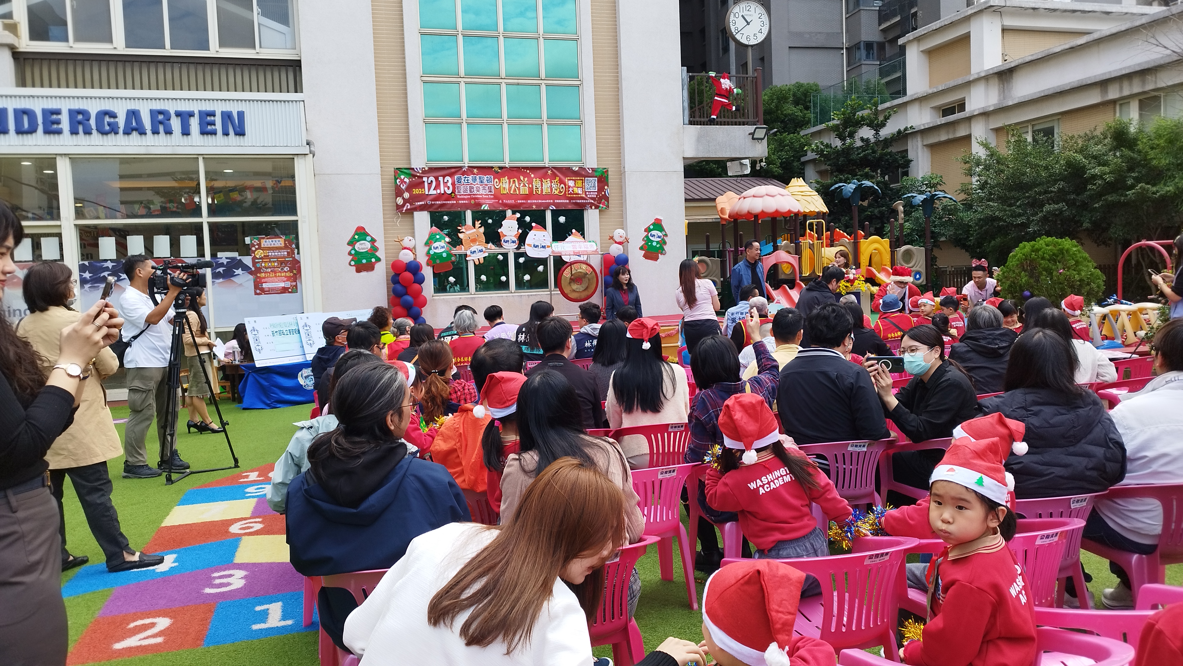 12月13日(六)在華聖頓幼兒園登場的「聖誕小鎮歡樂市集」,設有30多個攤位,提供美食市集及親子闖關活動,內容為敲鑼獻愛、幼兒聖誕舞台秀、家長舞蹈群、聖誕任務區、聖誕手作坊、華聖頓薩克斯風樂團、聖誕幸運摸獎⋯等,家長與孩子們熱情參與,氣氛熱開温 執行長莊瑞娜期盼「公益市集不僅是孩子展現學習成果的舞台,更希望能透過參 助人快樂,從小培養良好的品格與社會責任感。」