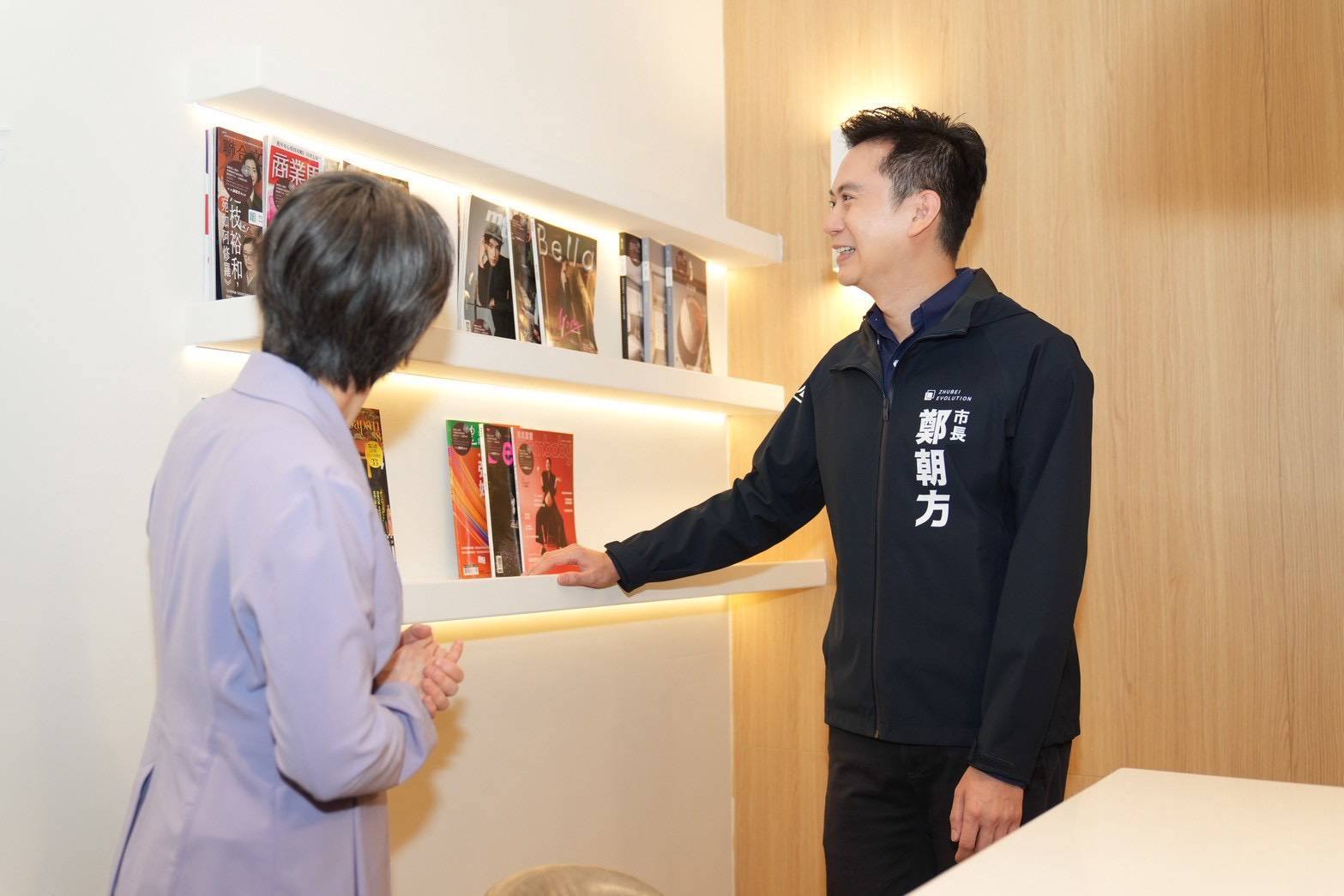 竹北市長鄭朝方向蕭副總統說明市公所近年推動三座傳統市場轉型的努力。鄭市長指出,為提升市場競爭力,市公所積極向經濟部爭取改善經費,並已陸續完成竹北市場及仁義市場的階段改造工程。這些改造不僅改善環境品質,更透過創新與美學的導入,成功吸引更多消費族群,其中竹北市場的「太子樓廊道」、仁義市場 的「大小客廳」等特色空間,更是獲得民眾高度肯定。