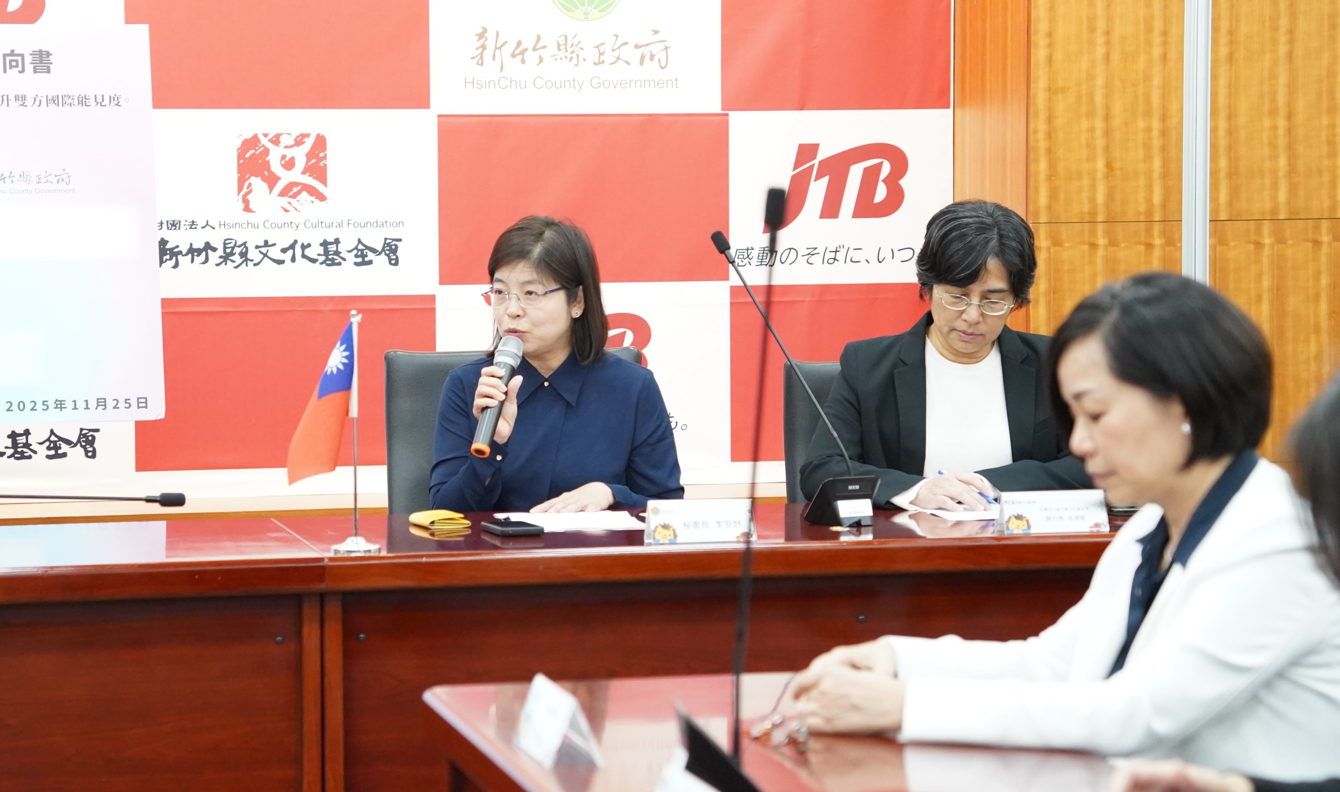 秘書長李安妤表示,JTB旅行社具有百年歷史,是日本最具規模與國際影響力的旅行品牌之一,不僅深耕旅遊市場,更長期投入文化推廣、教育交流與地方創生。此次與文化基金會合作,不僅象徵新竹縣文化能量獲得國際肯定,也為縣府推動文化觀光與地方產業升級注入重要助力。