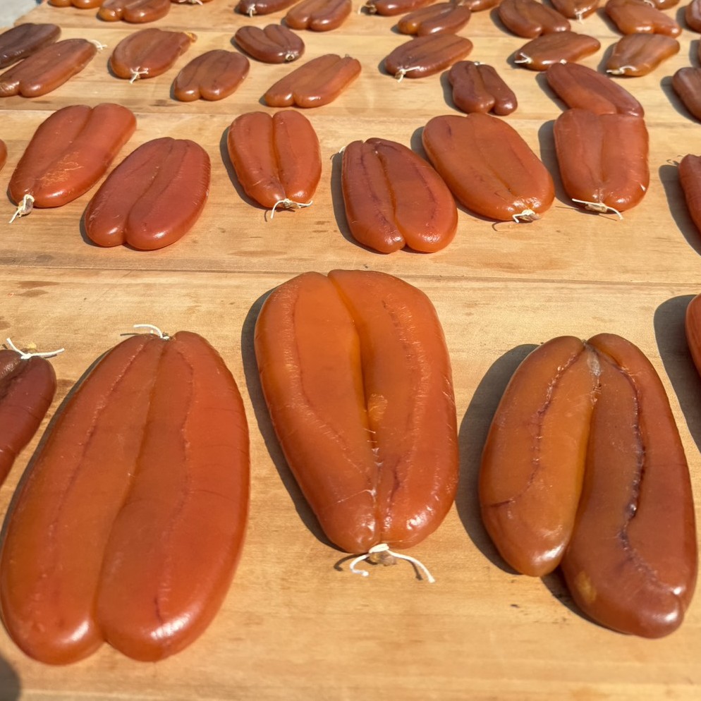 竹北拔子窟為全臺最北端的烏魚養殖區,擁有得天獨厚的「九降風」氣候條件,是烏魚子乾製的天然優勢。全區約67公頃的養殖面積,孕育出色澤金黃、風味濃厚的高品質烏魚子,曾榮獲全國十大金鑽烏魚子與優質烏魚子等獎項肯定,並打造在地品牌「九降金品」,成為新竹縣最具代表性的伴手禮之一,今年產量預估7萬尾。竹北市水產養殖產銷班在產官學合作下,近年推動智慧化管理、產地標示、溯源建置與友善養殖方式,讓烏魚產業朝向更安全、透明與永續的方向發展,讓民眾買得放心、吃得安心。